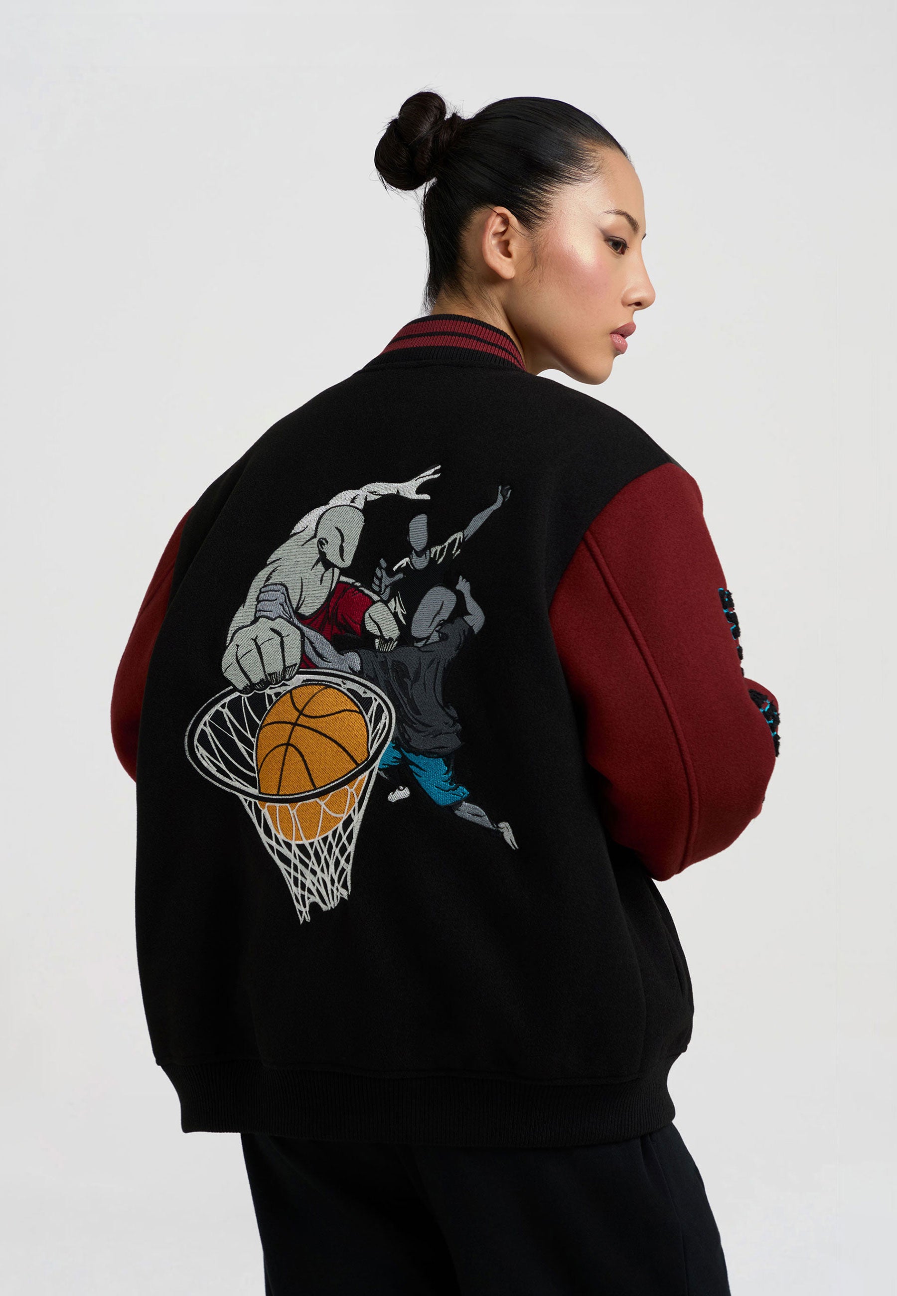 BLOUSON BOMBER CONTRASTÉ RESPECT THE GAME POUR FEMME en noir