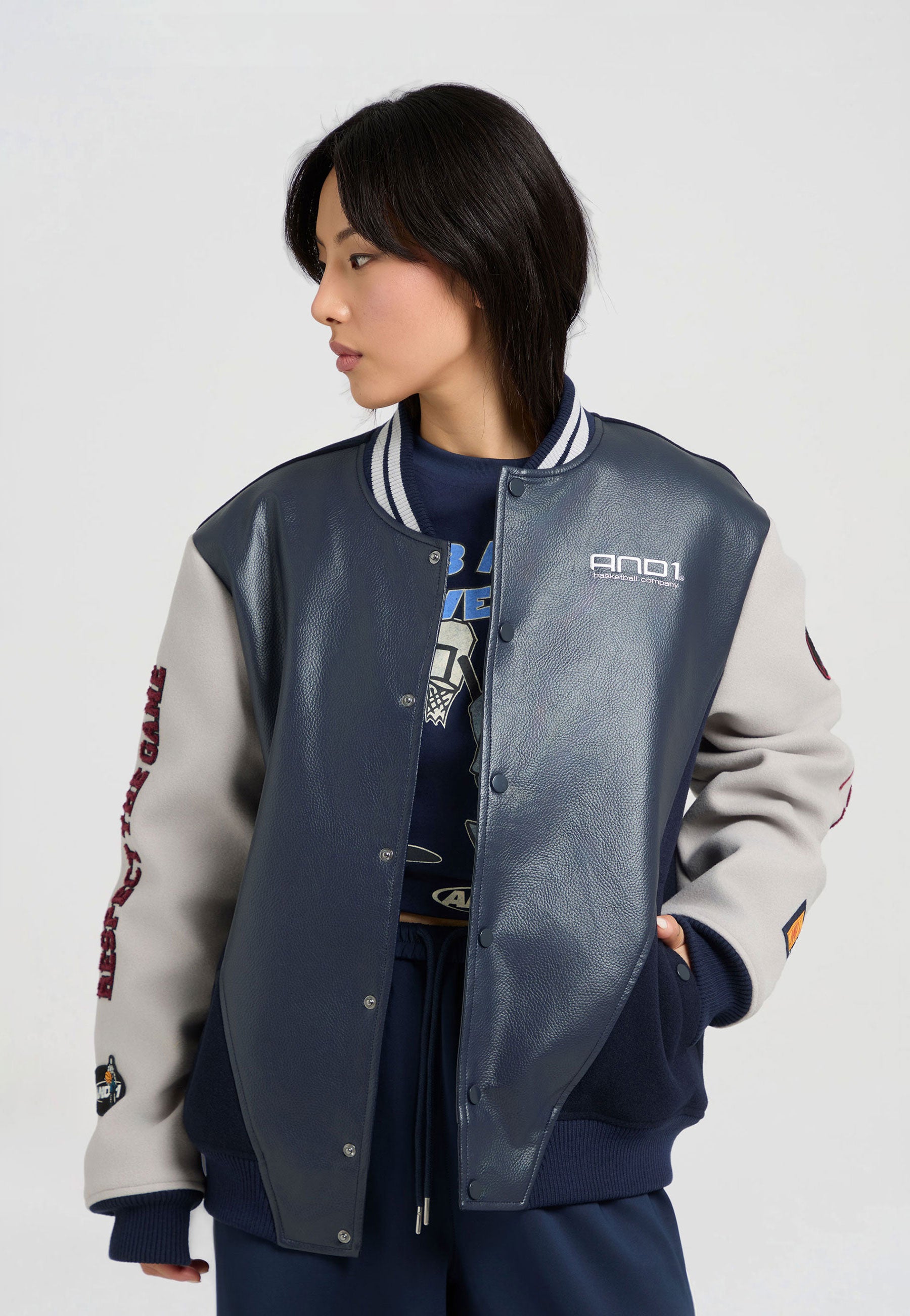 Blouson aviateur contrasté Respect The Game pour femme - Bleu marine