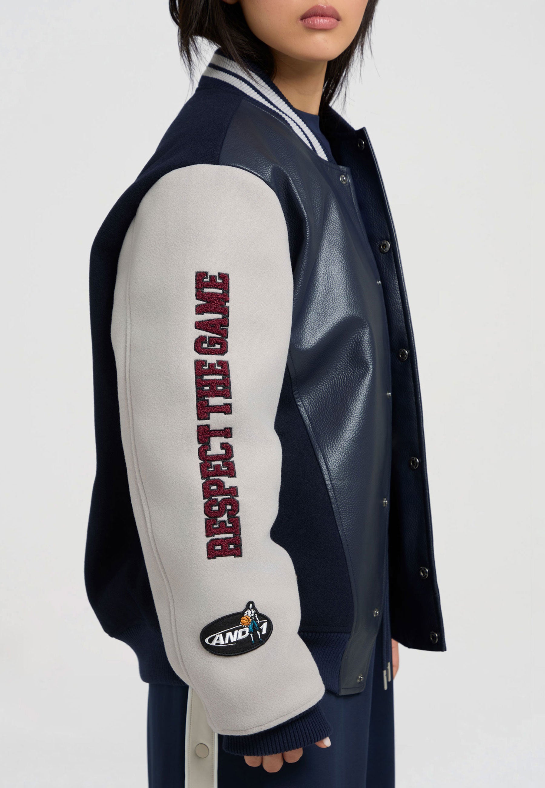BLOUSON BOMBER CONTRASTÉ RESPECT THE GAME POUR FEMME en bleu marine