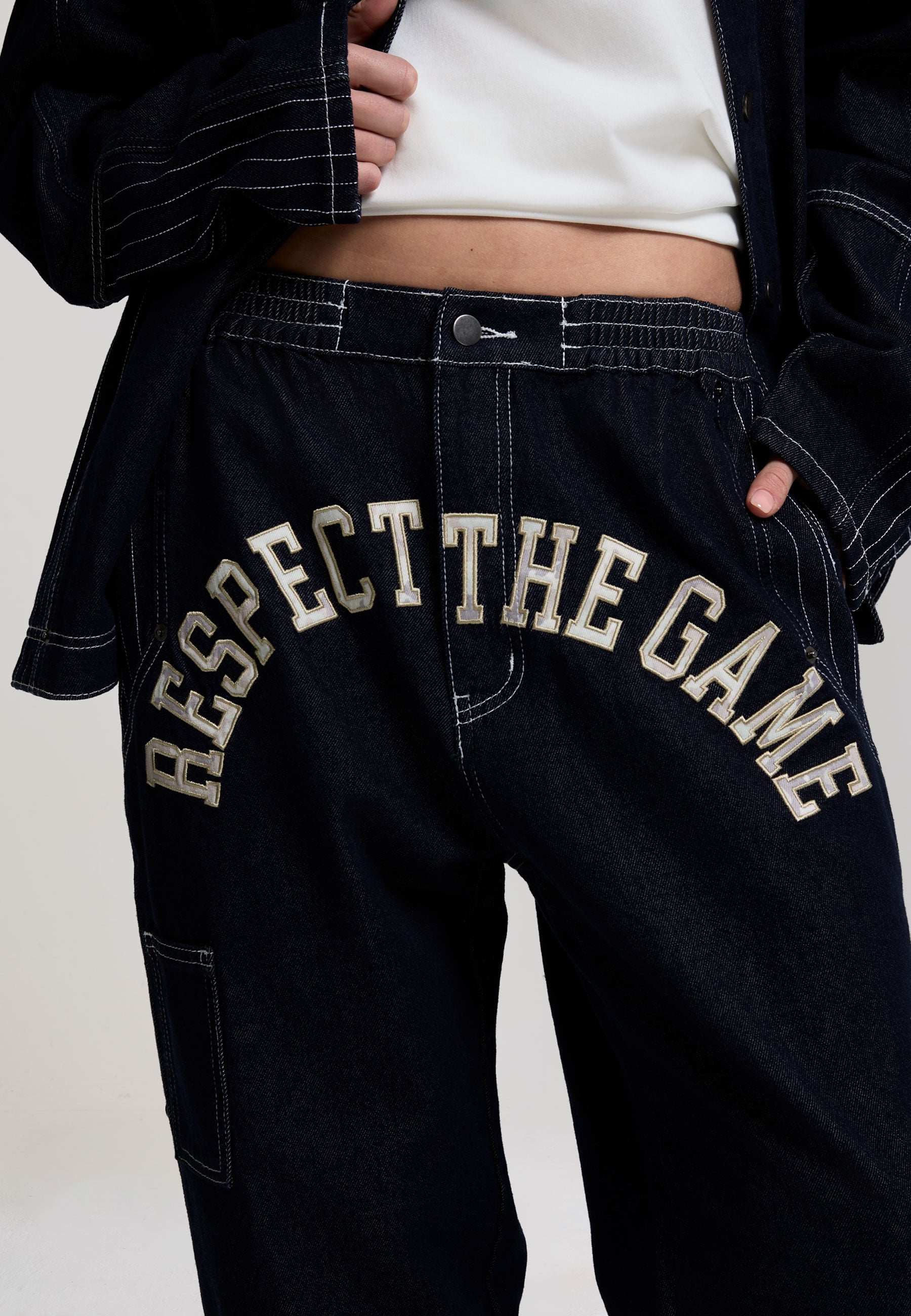 Womens Respect The Game Contrast Stitch Jeans - Indigo