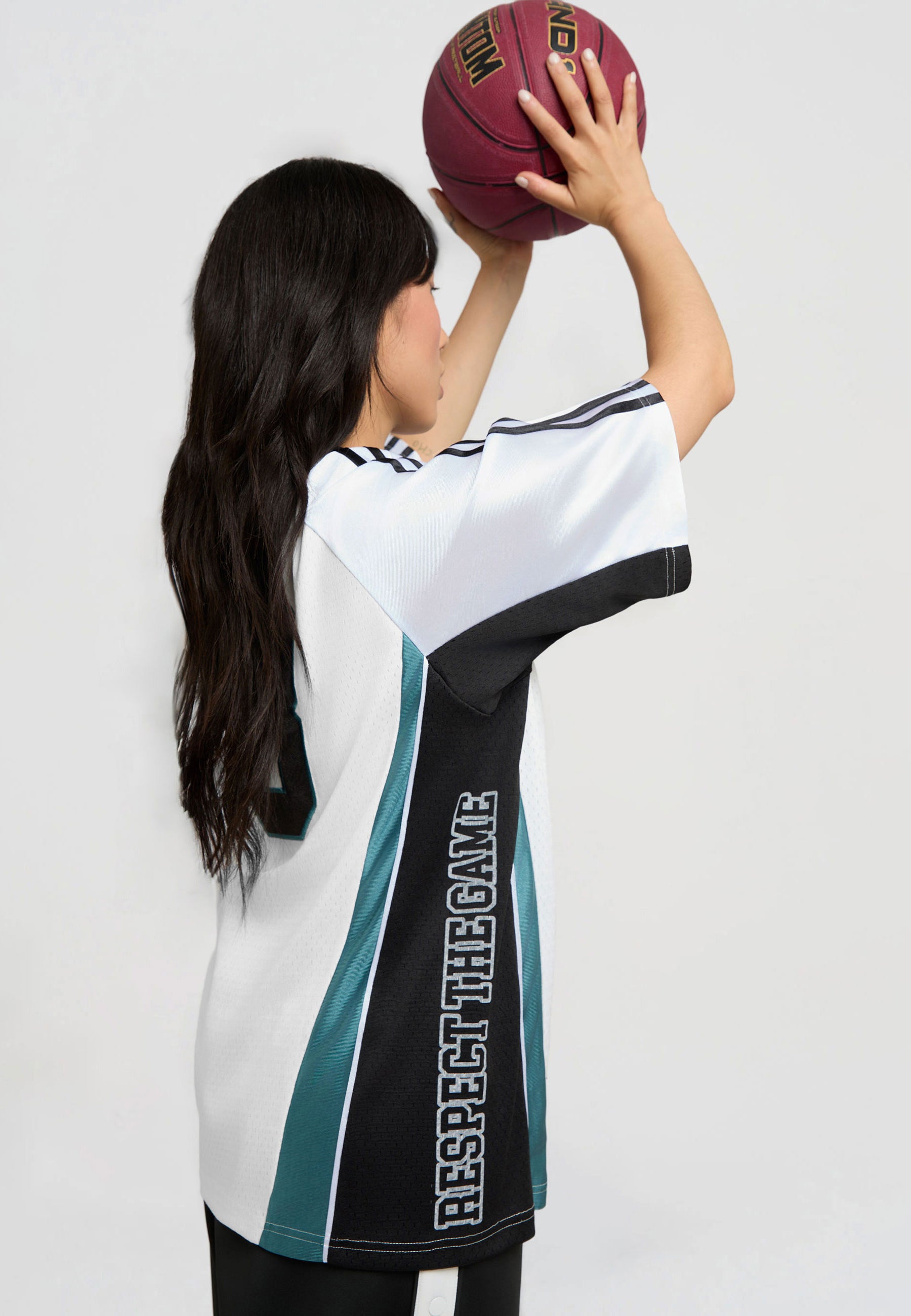 Maillot de sport Super Airtex Respect The Game pour femme - Blanc/Bleu