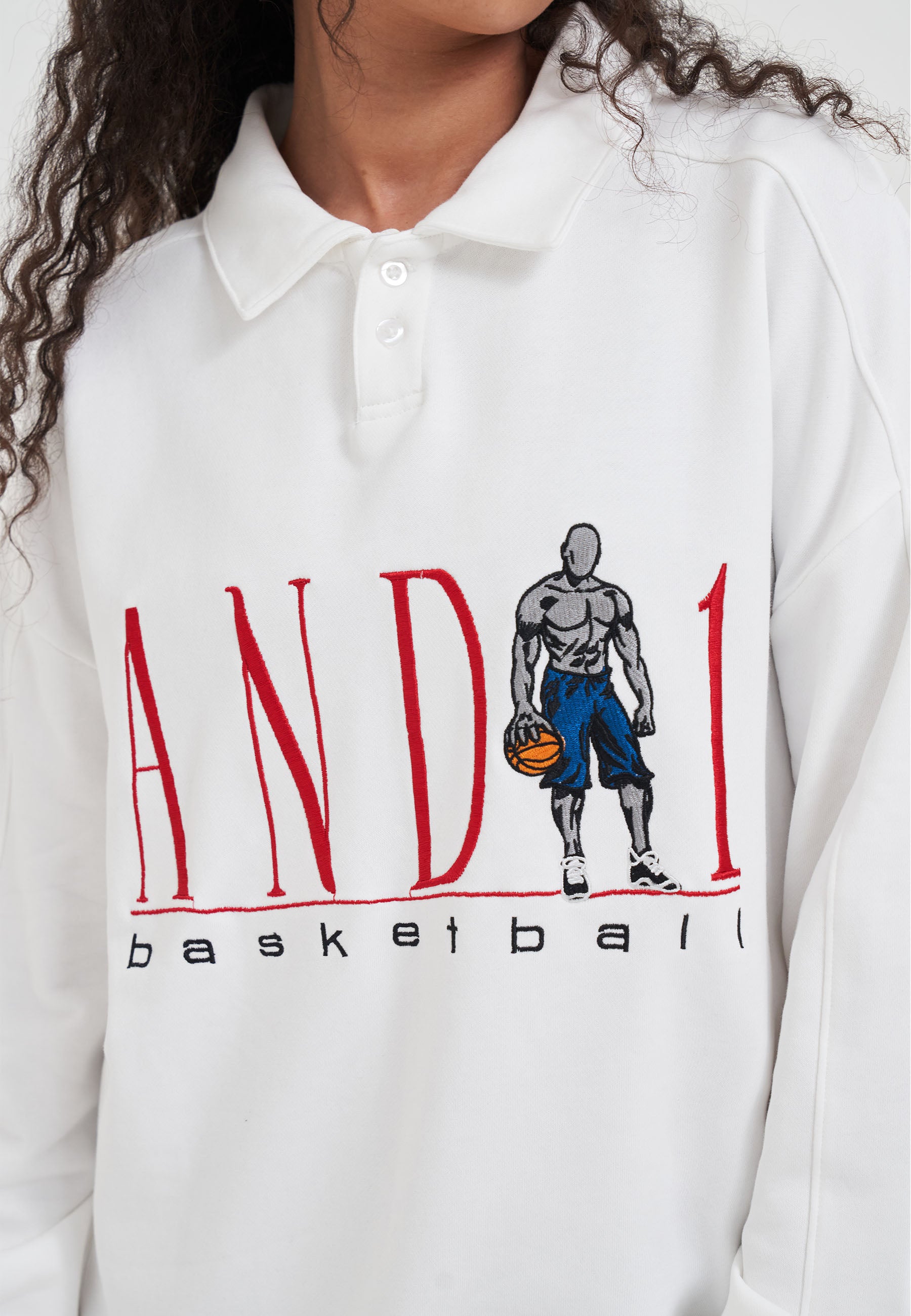 Haut à manches longues et col avec logo rétro pour femme en blanc
