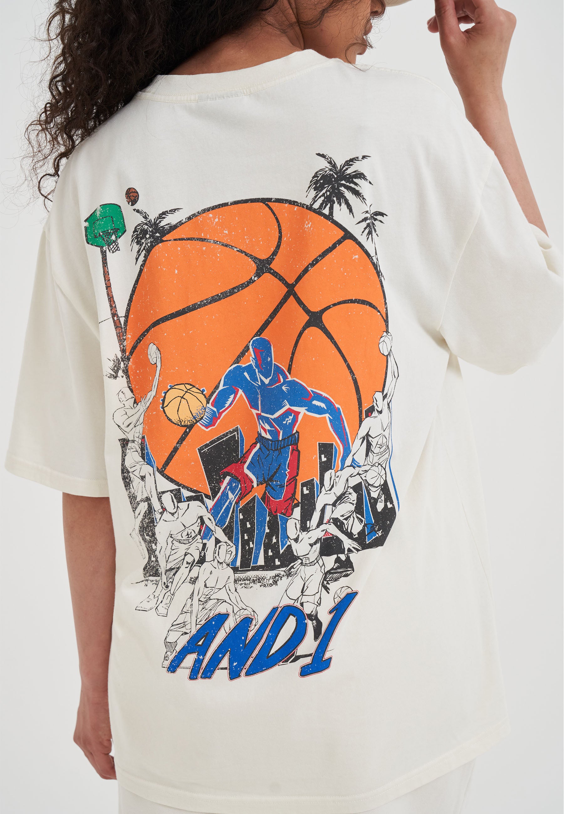T-SHIRT FEMME STREETBALL GRAPHIQUE AU DOS en écru