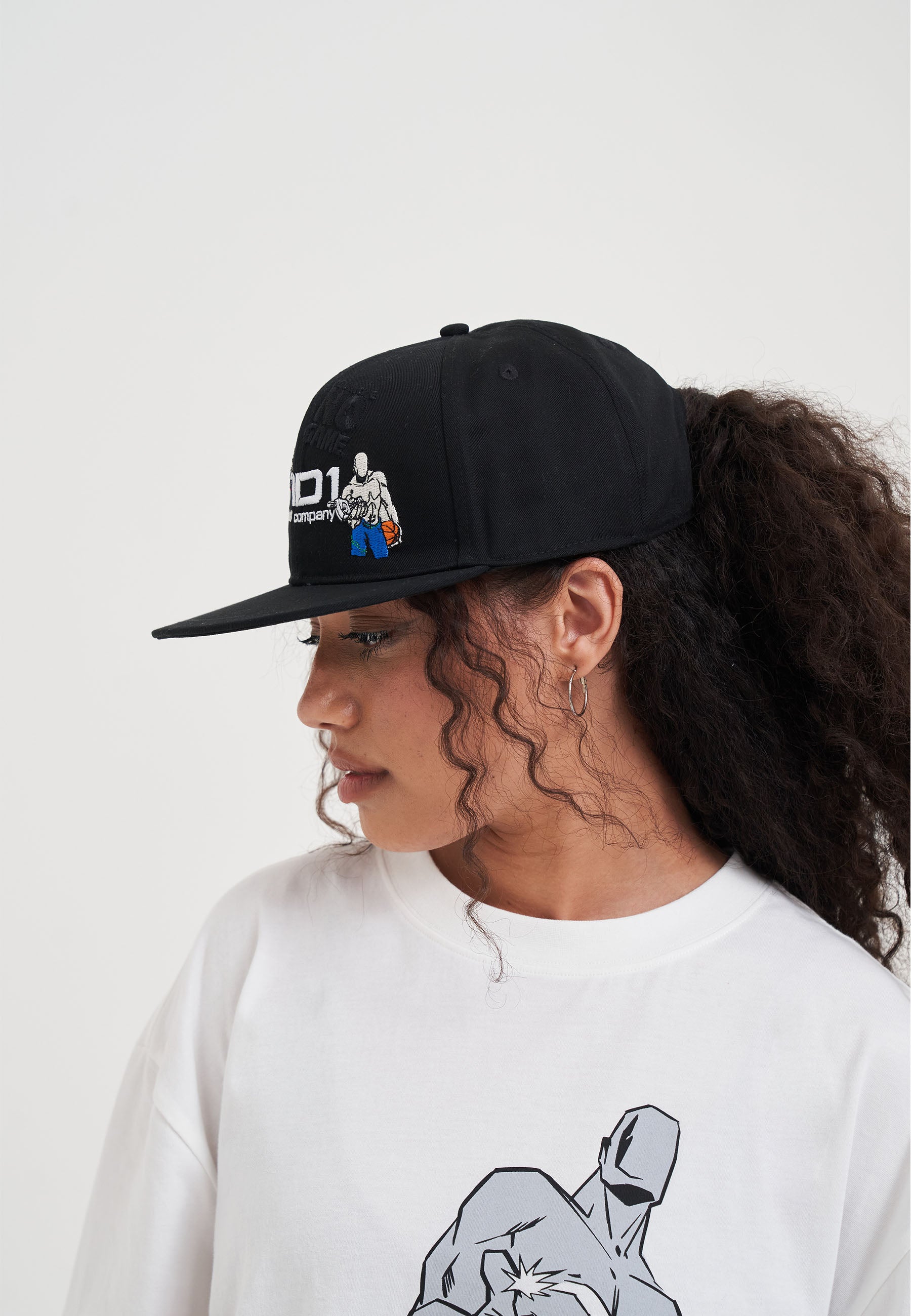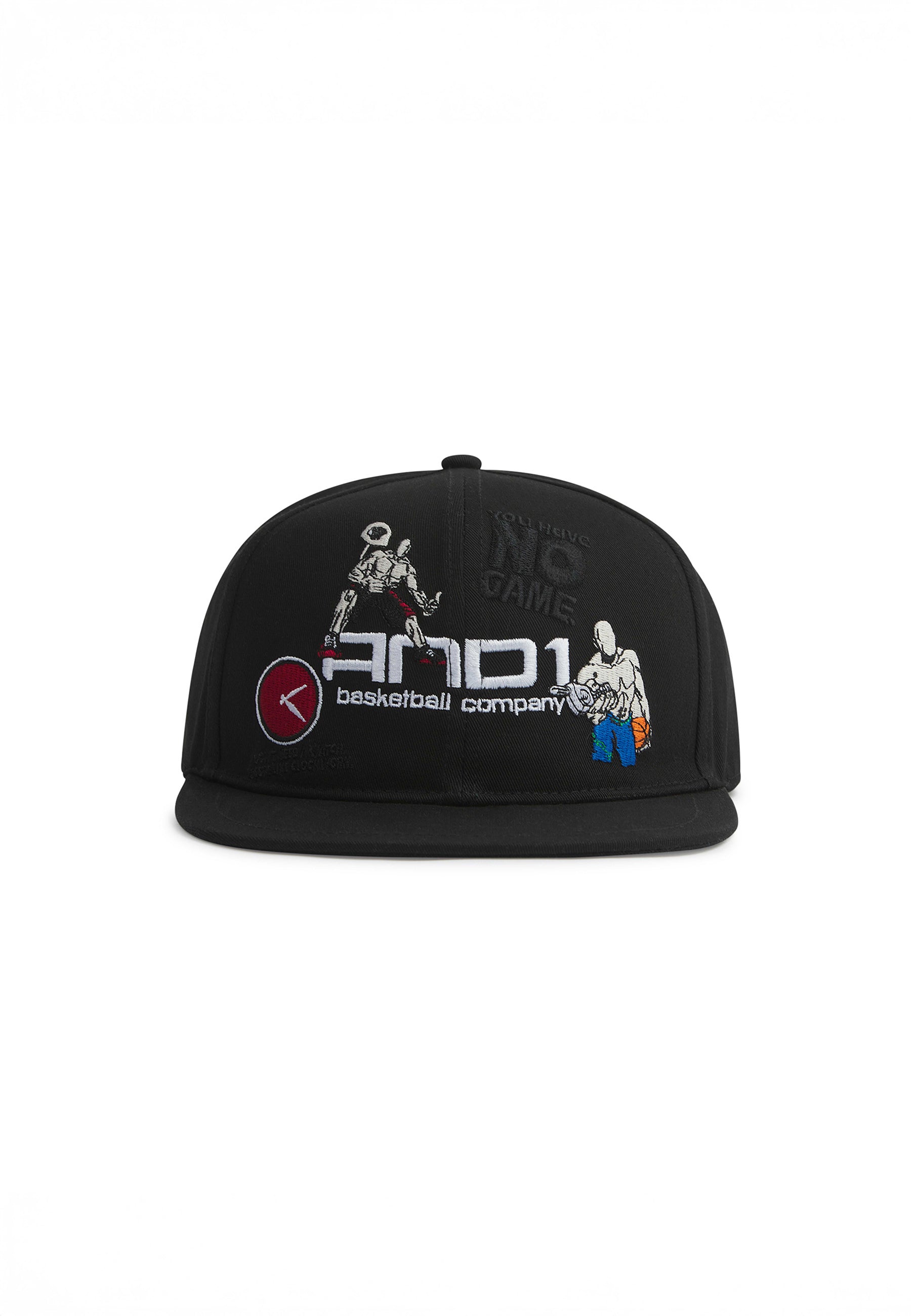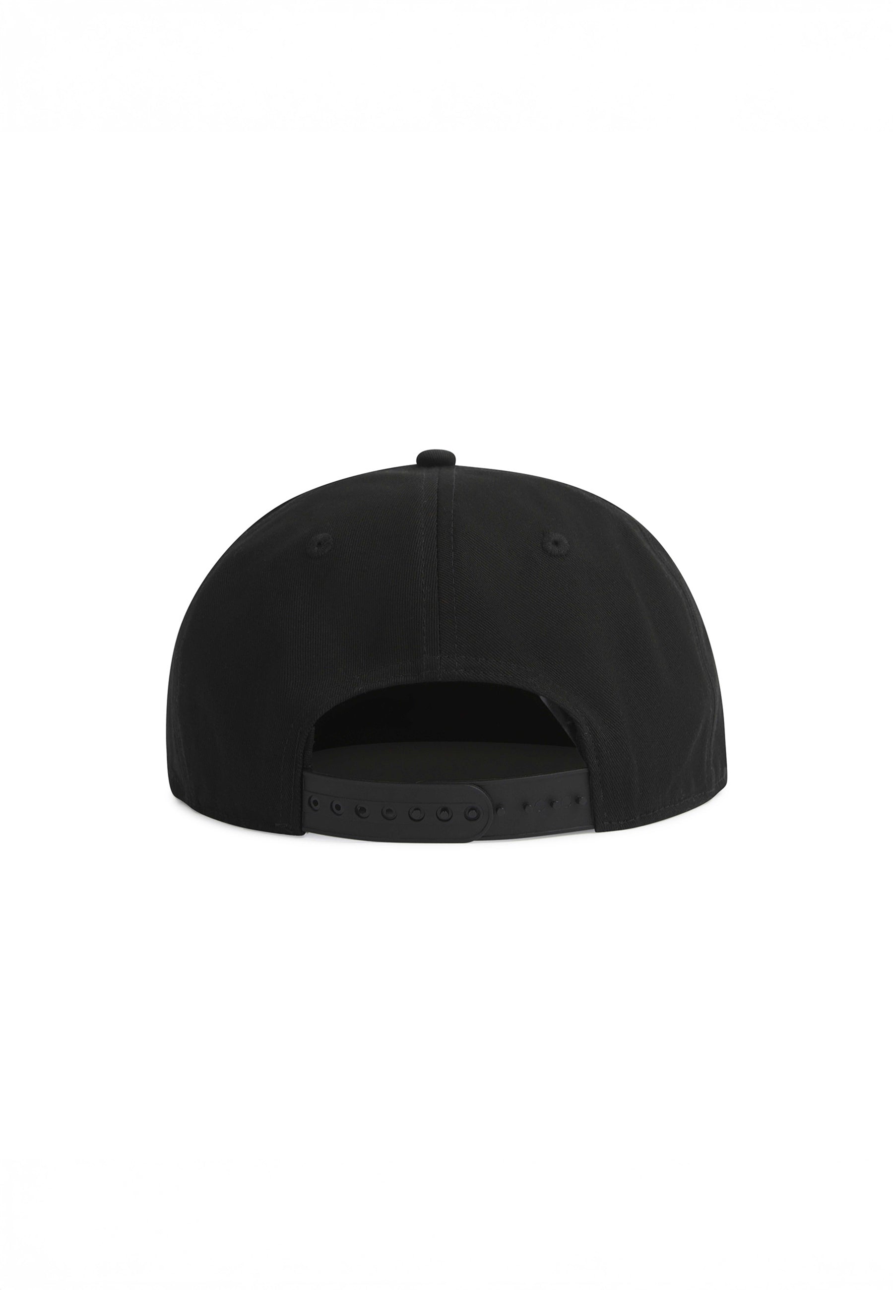 GRAPHIC BADGES 6 PANEL FLAT PEAK CAP in Black
