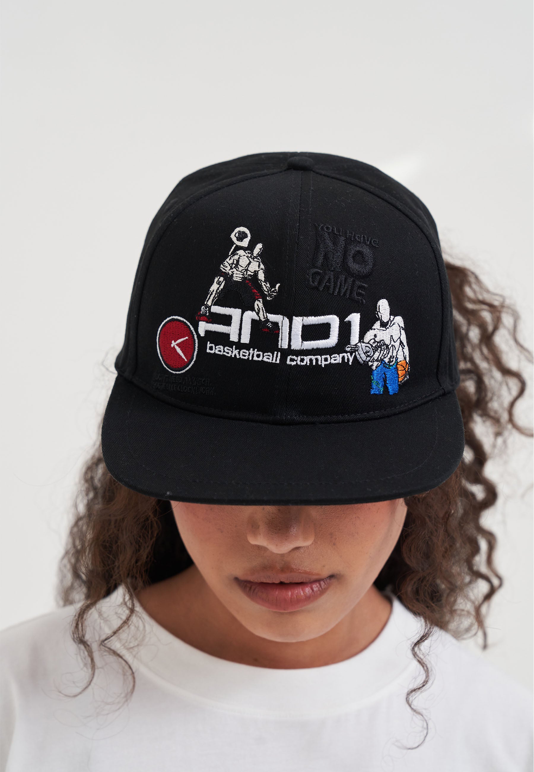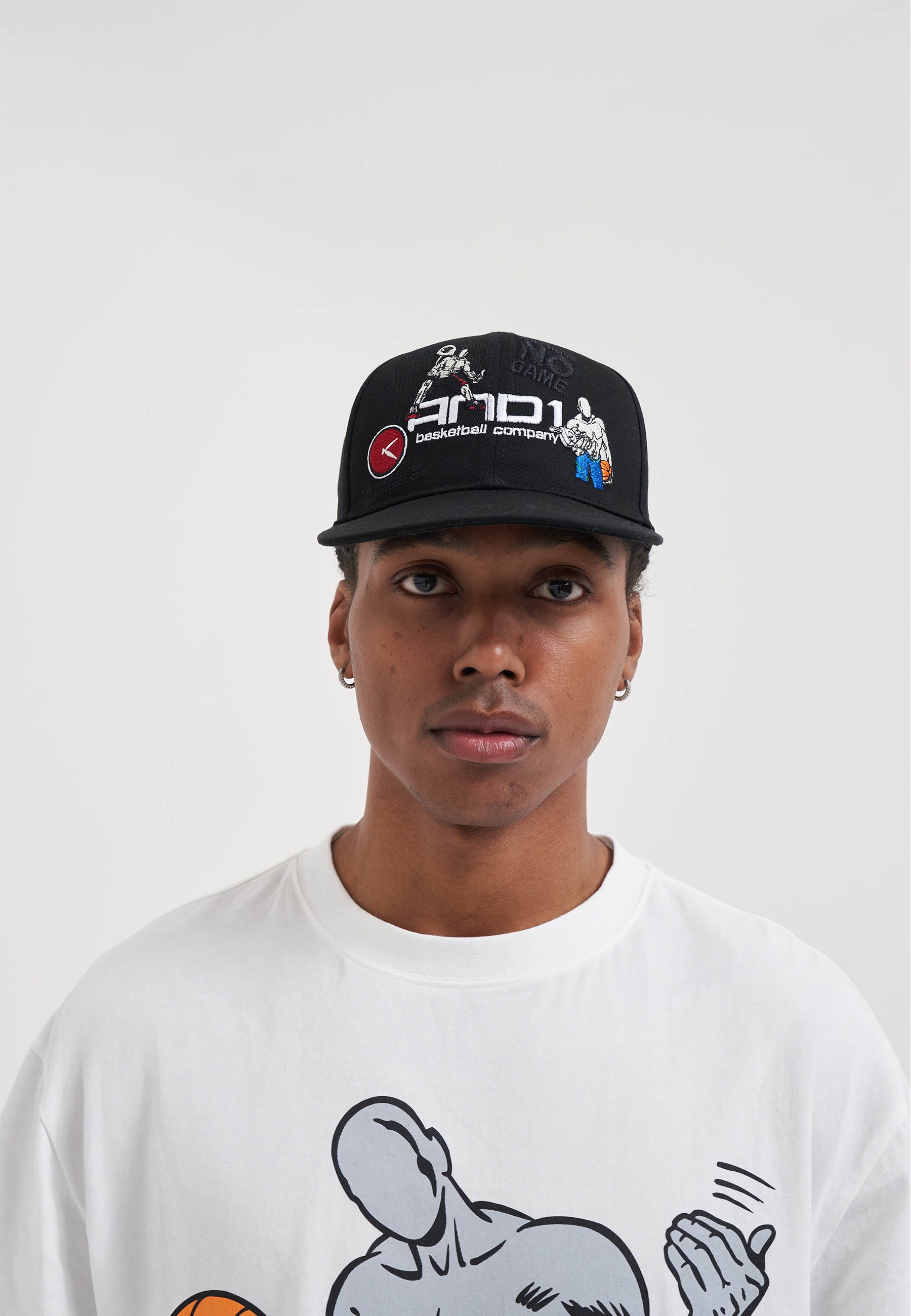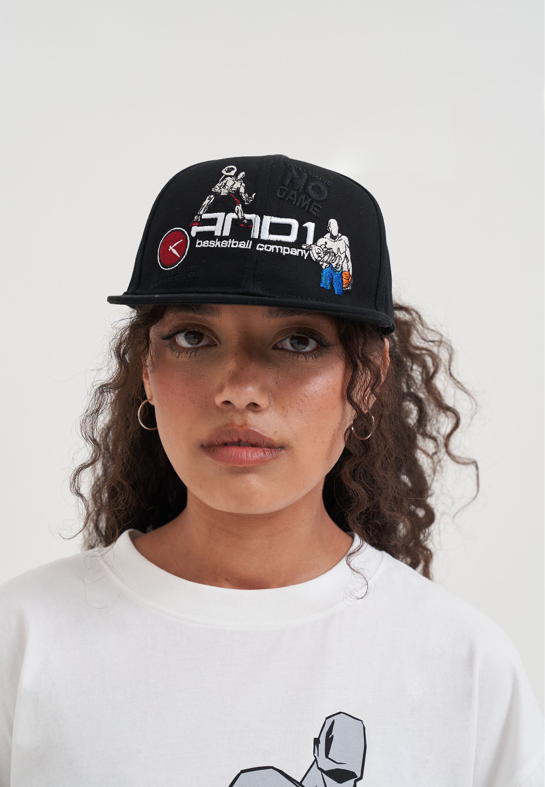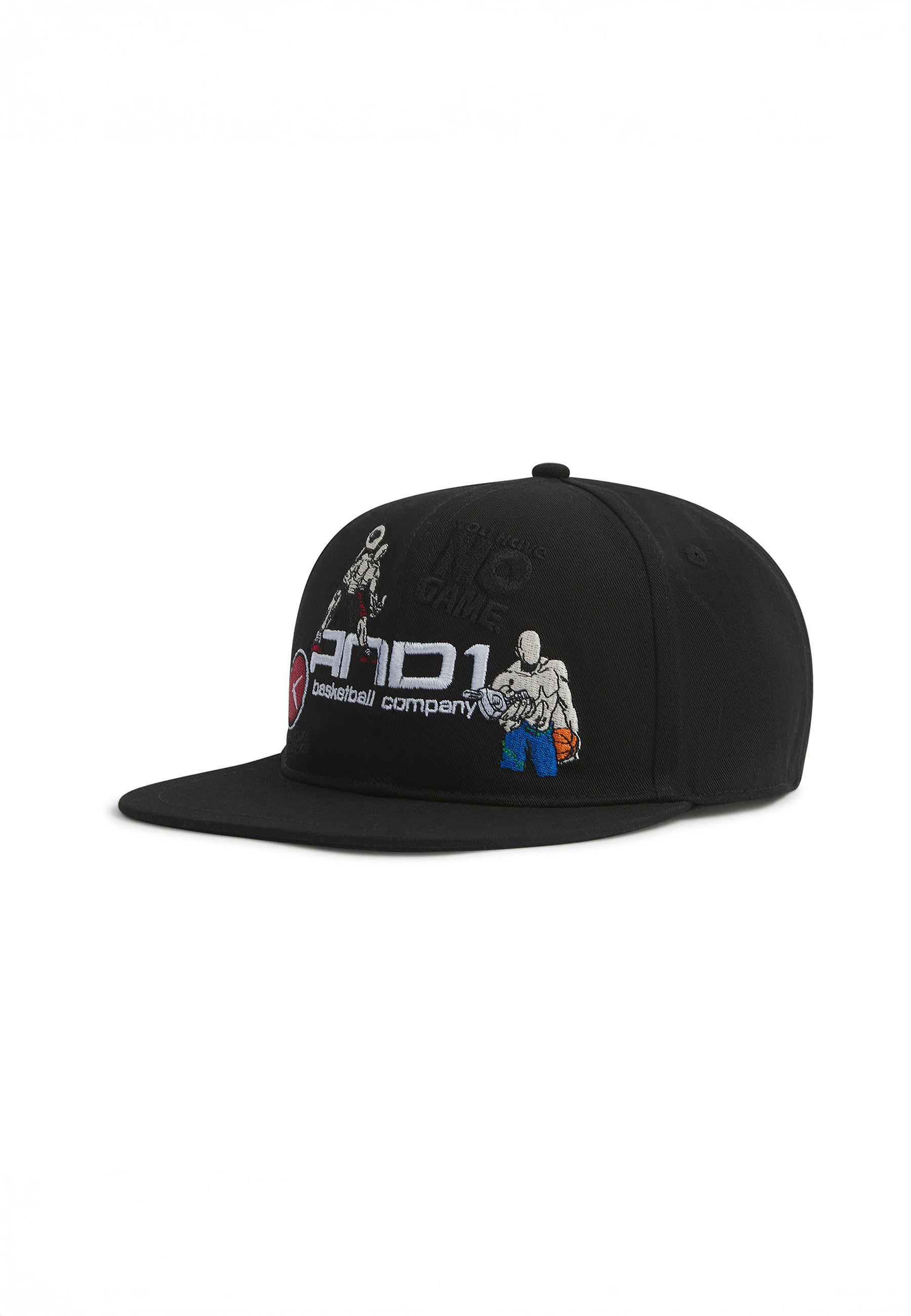 GRAPHIC BADGES 6 PANEL FLAT PEAK CAP in Black