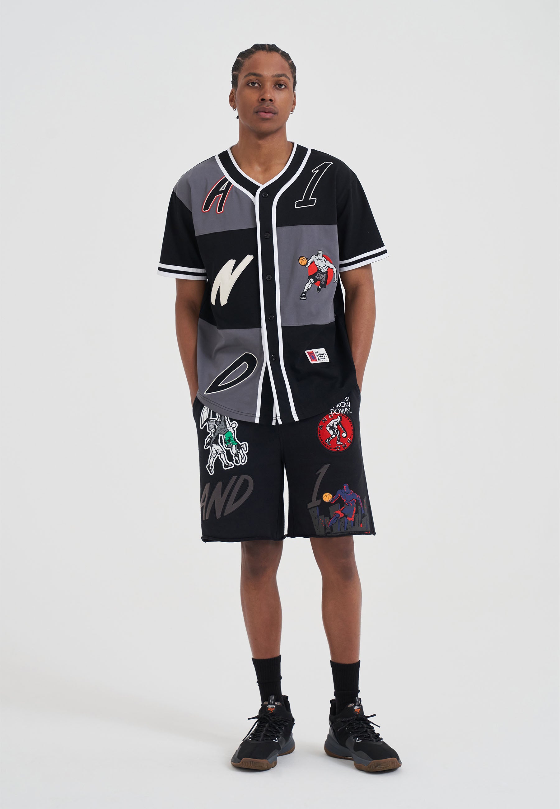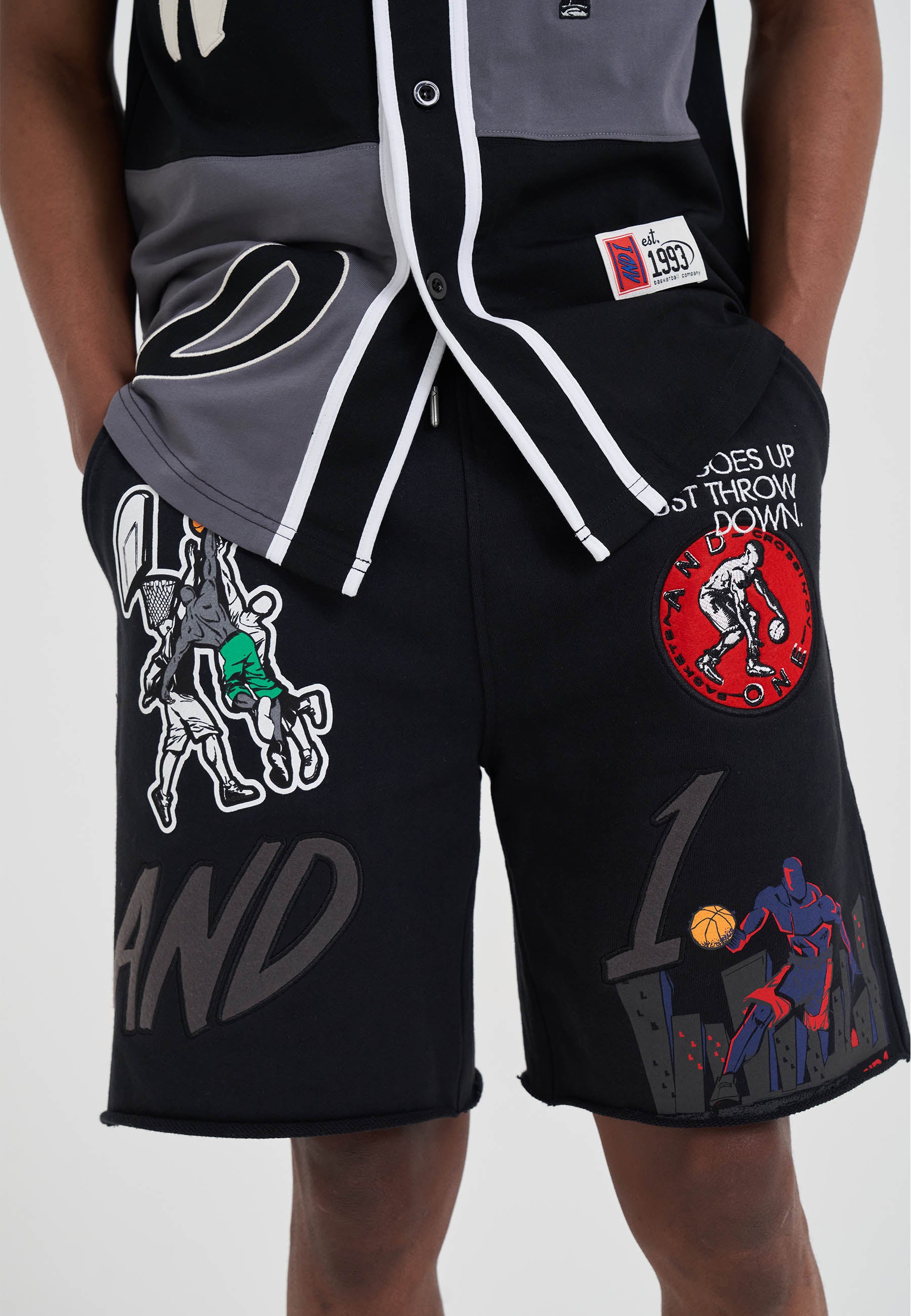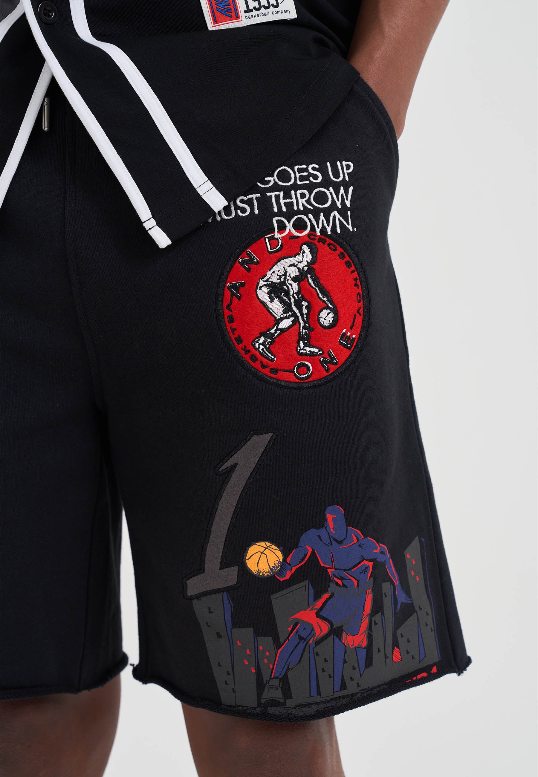 MENS MULTI APPLIQUE SHORTS in Black