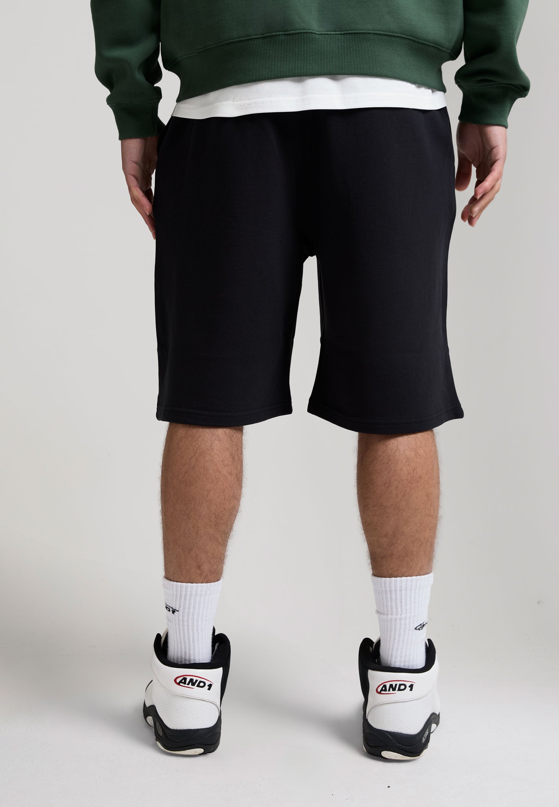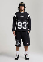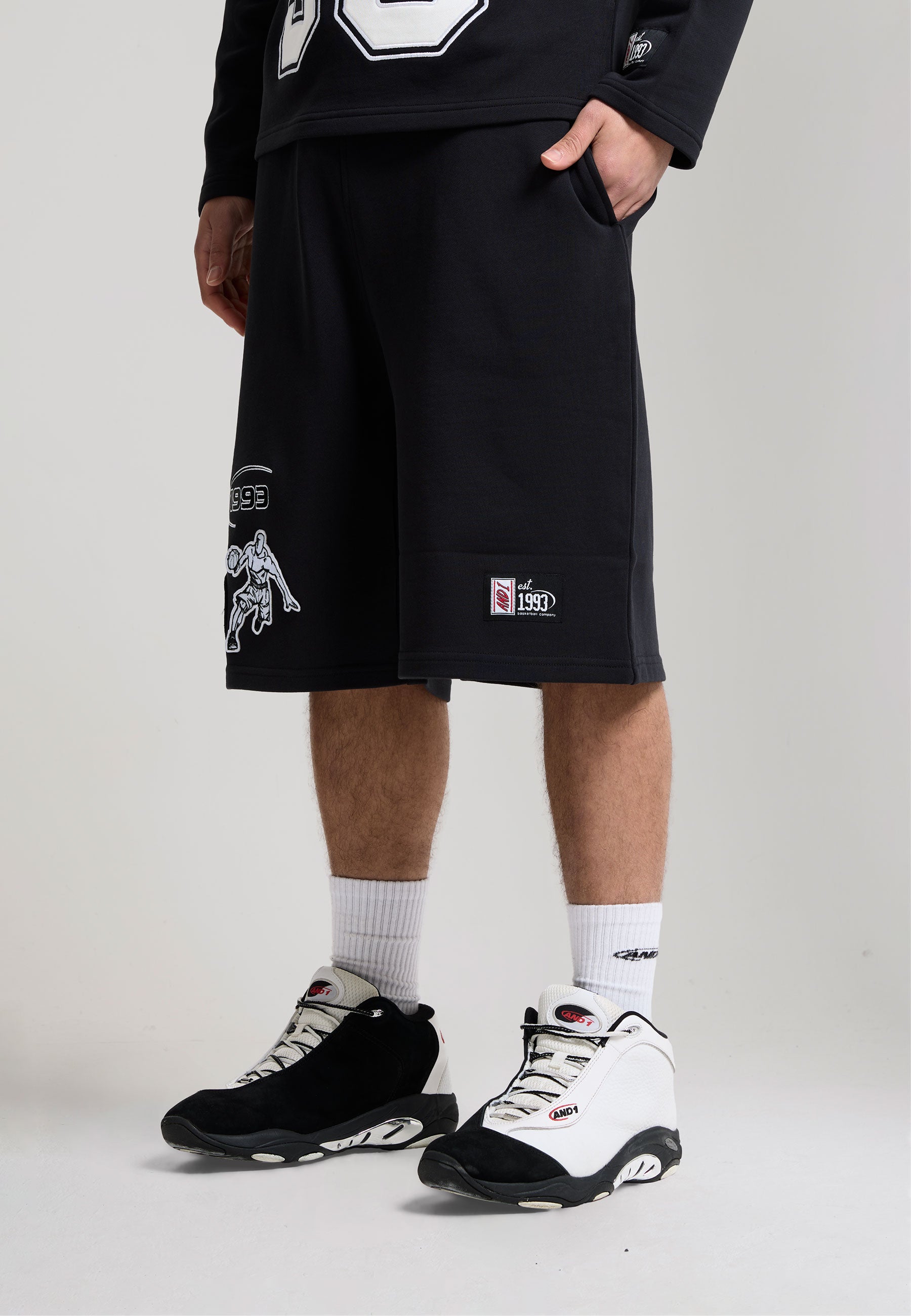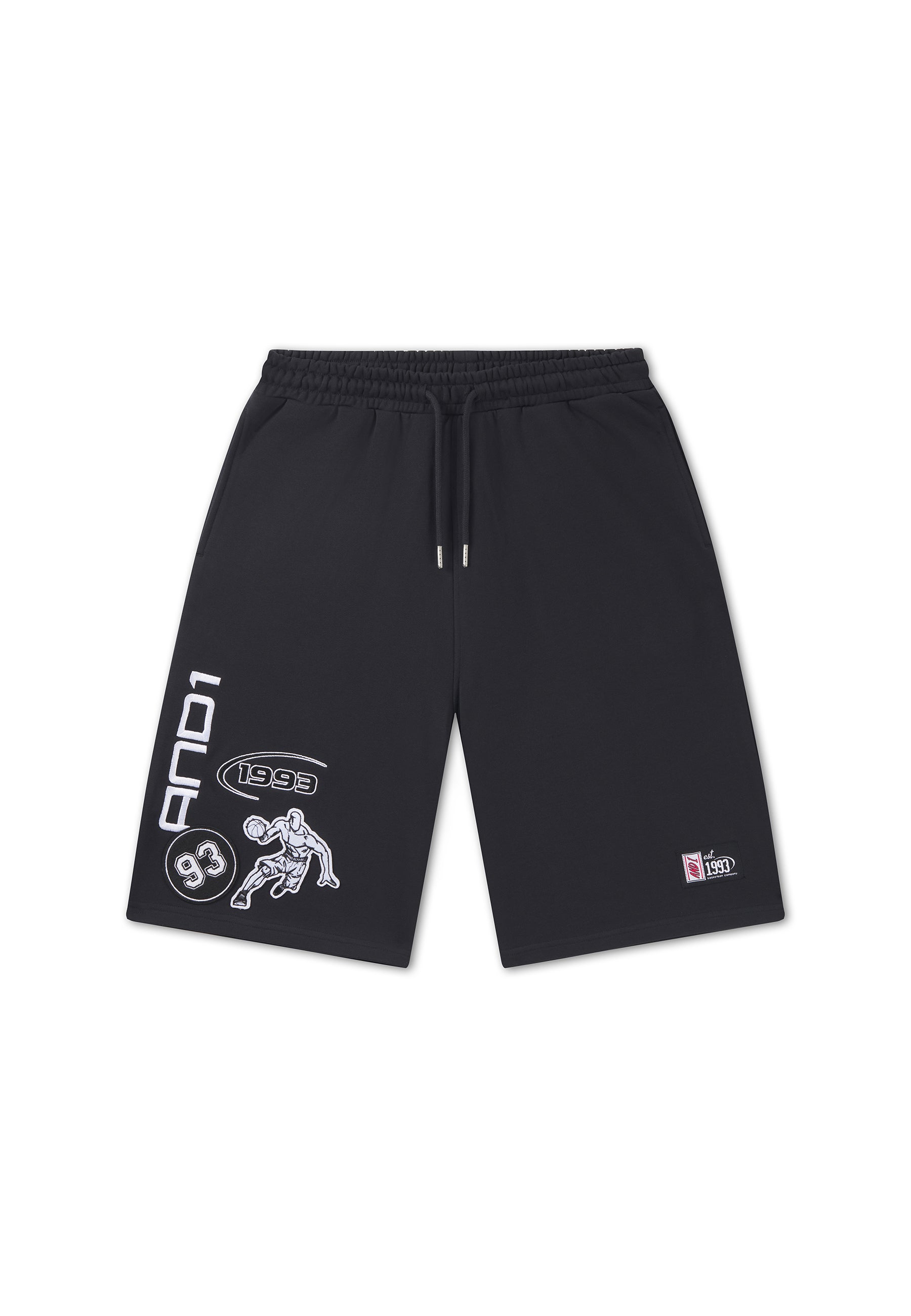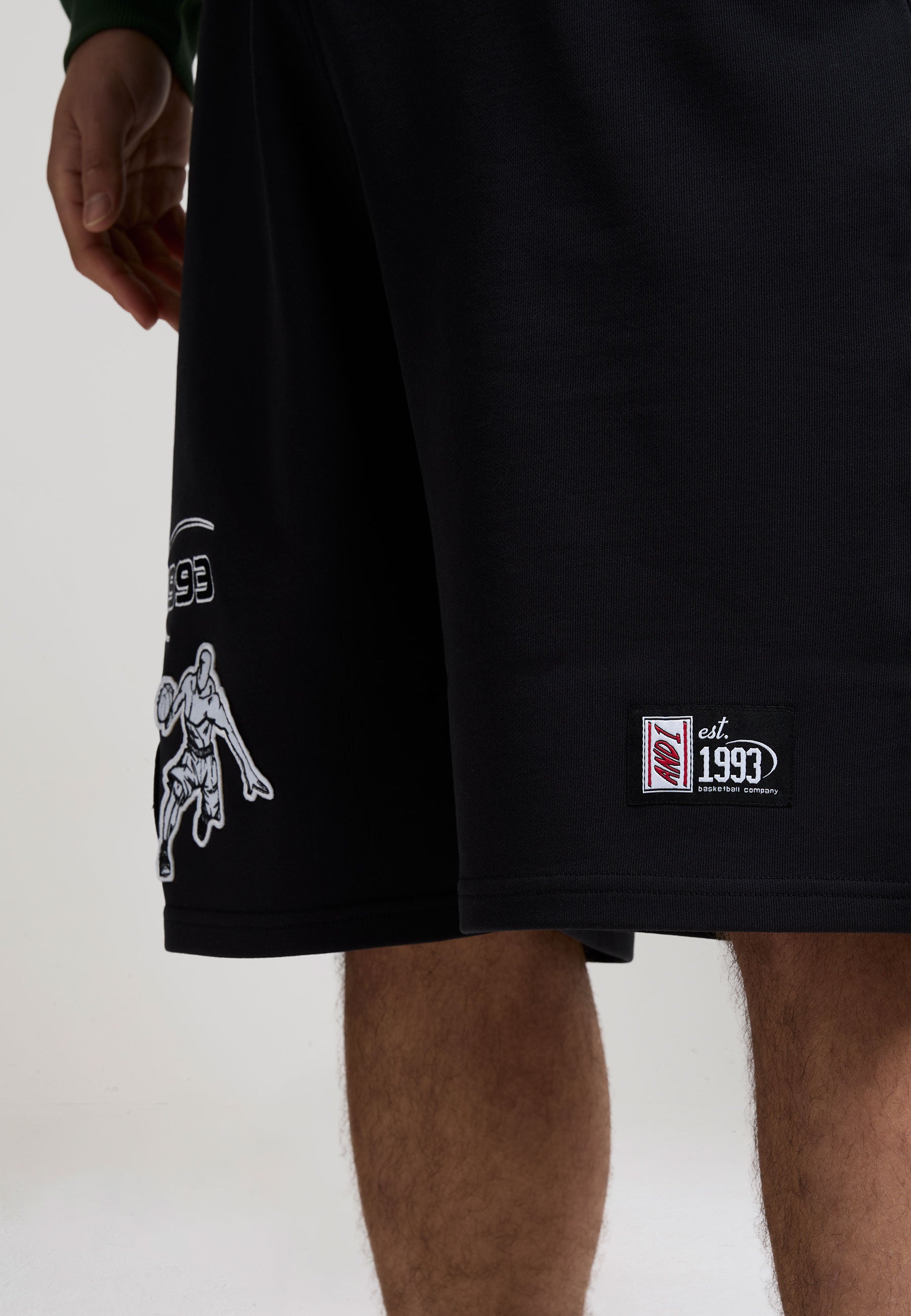 MENS ON COURT APPLIQUE BADGE JERSEY BASKETBALL JORTS in Black