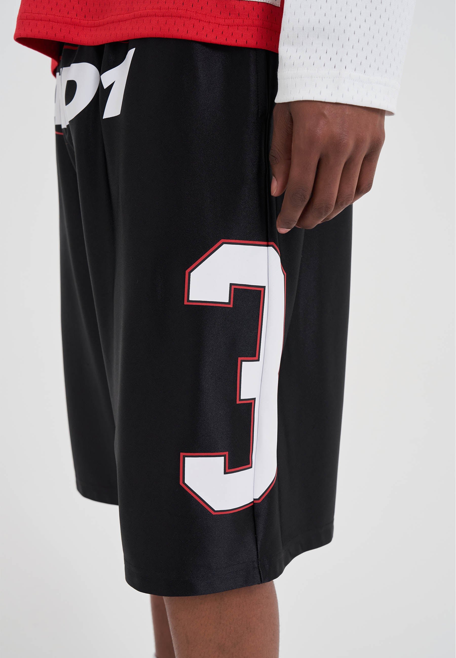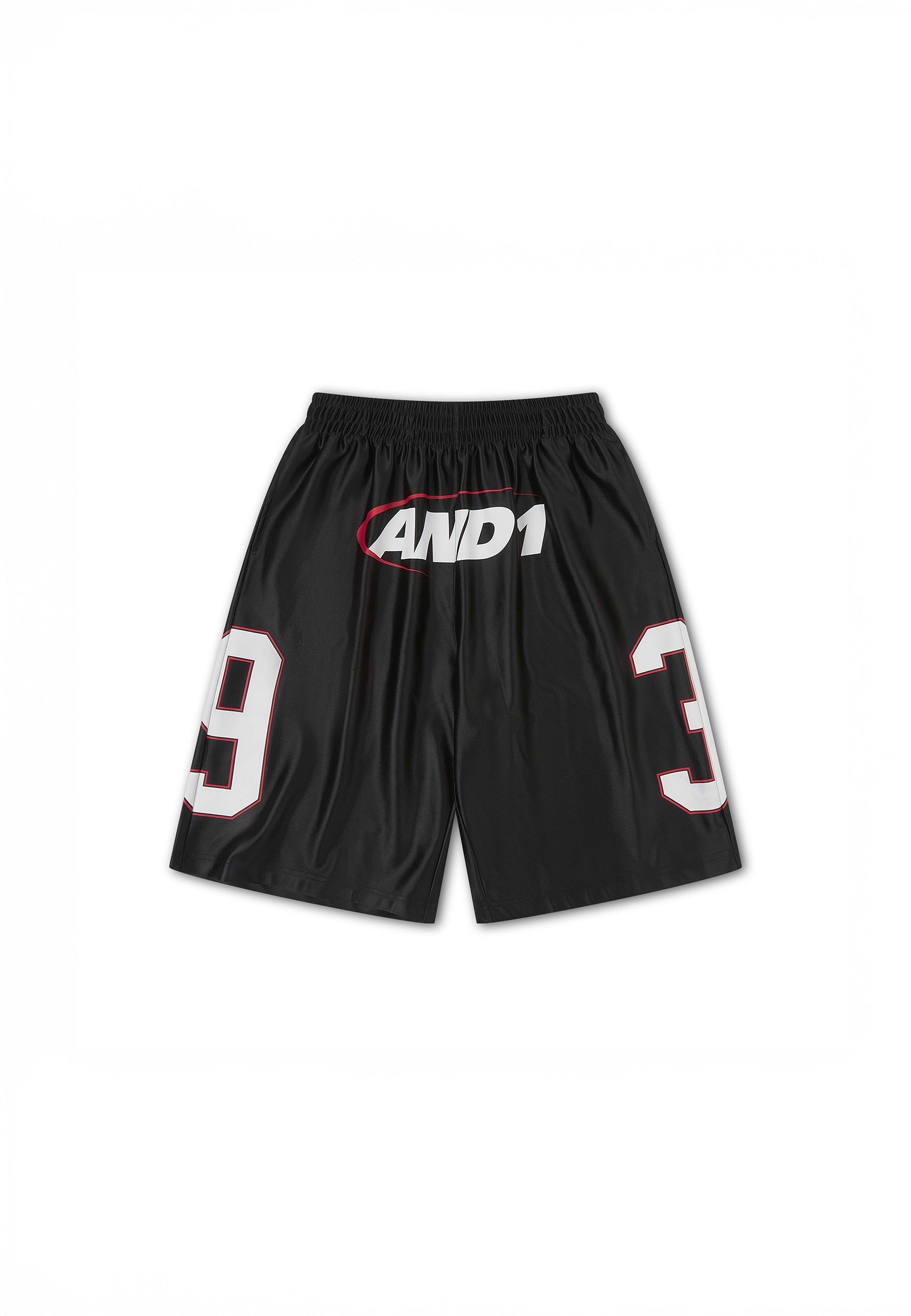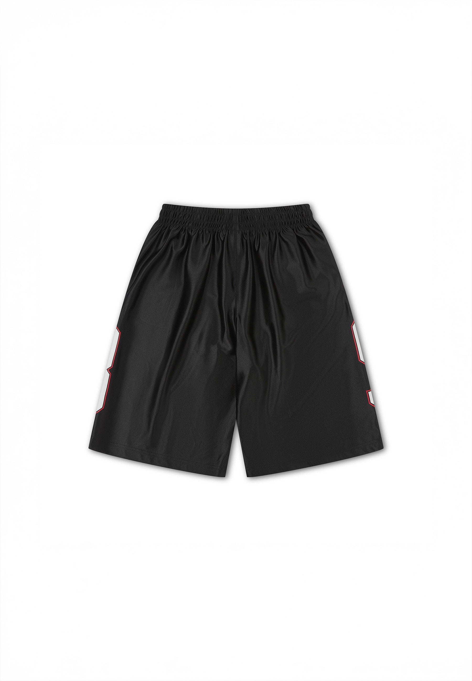 MENS SATIN SPORT GRAPHIC BASKETBALL SHORTS in Black