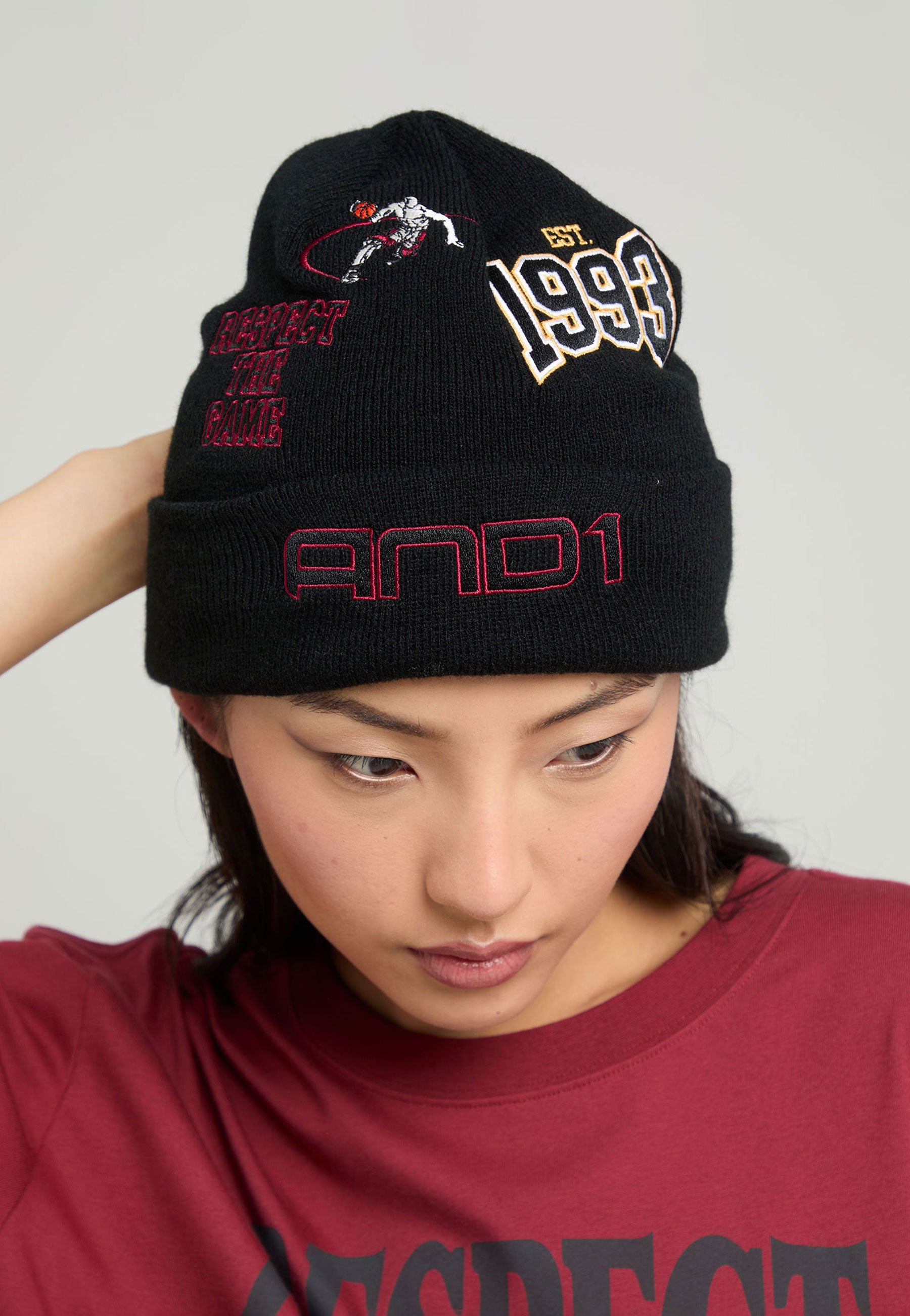 RETRO LOGO MULTI BADGE BEANIE HAT in Black