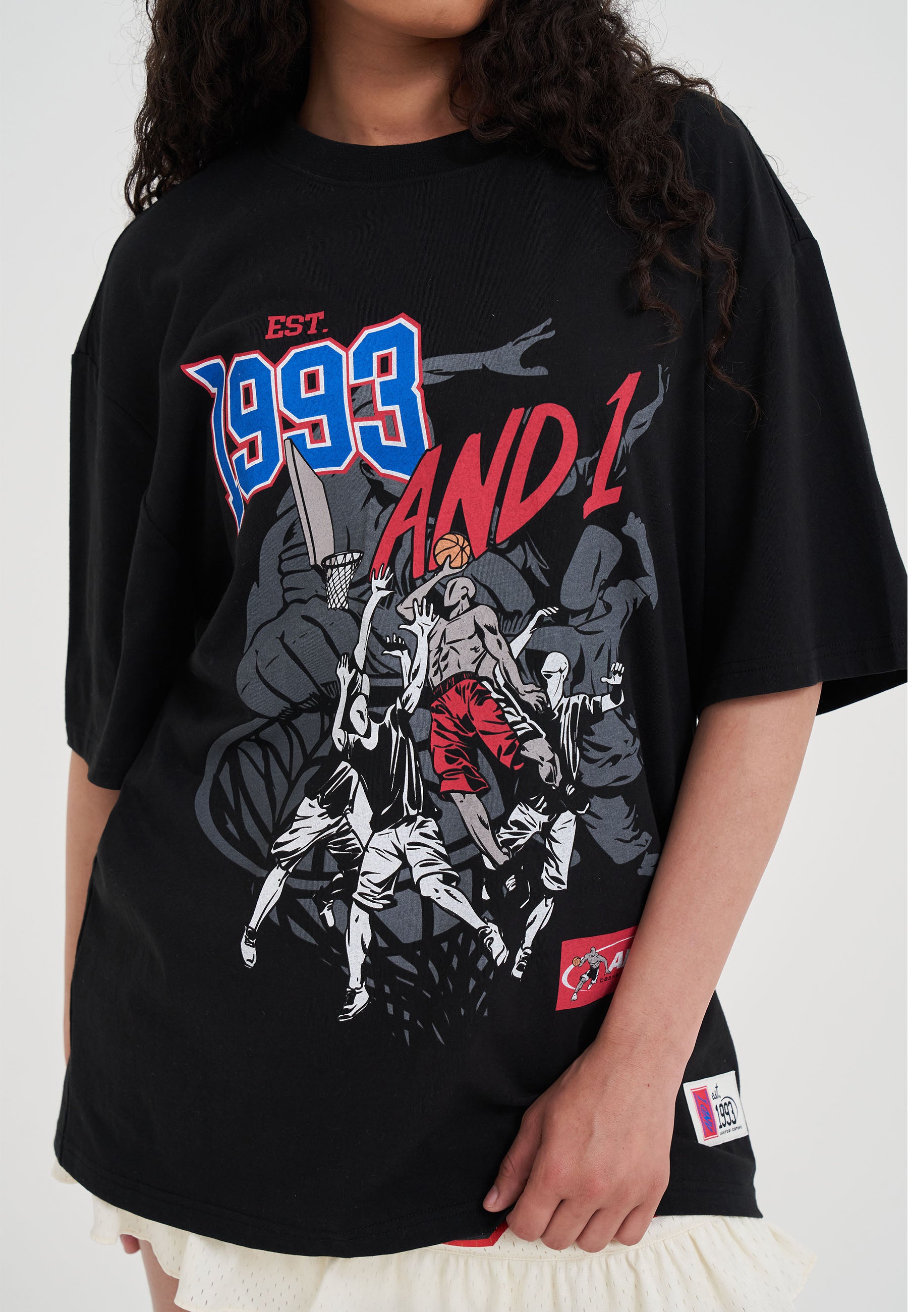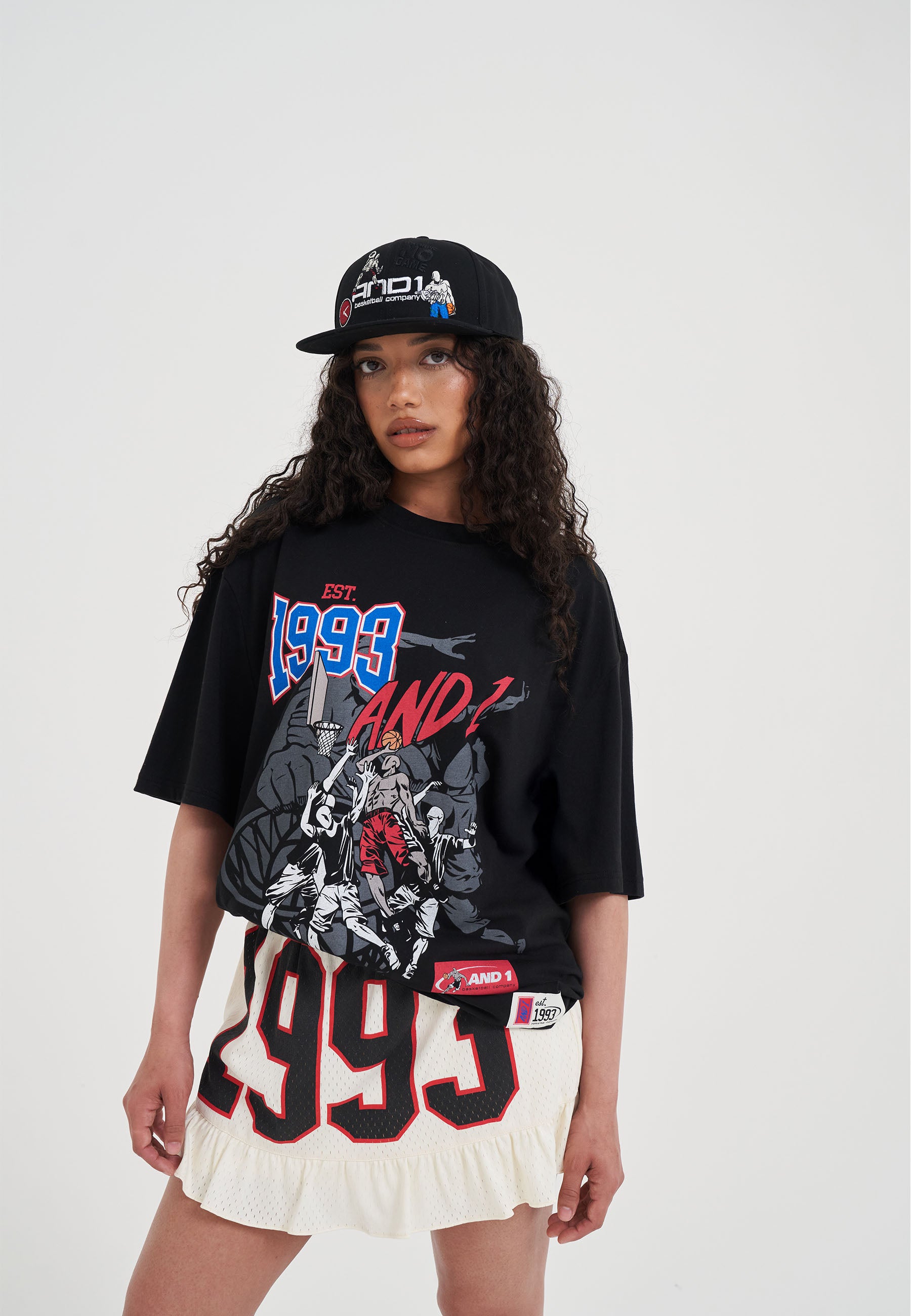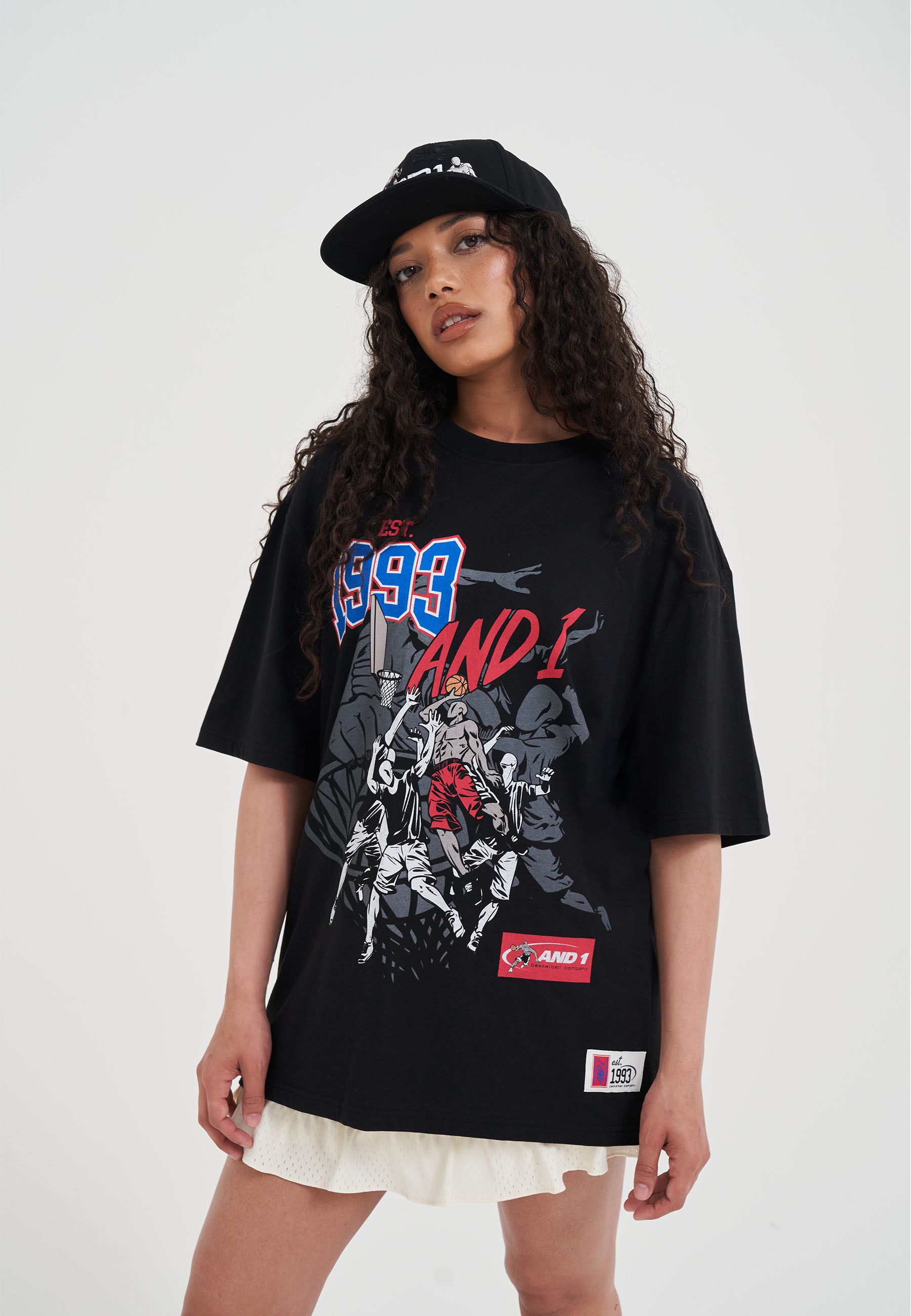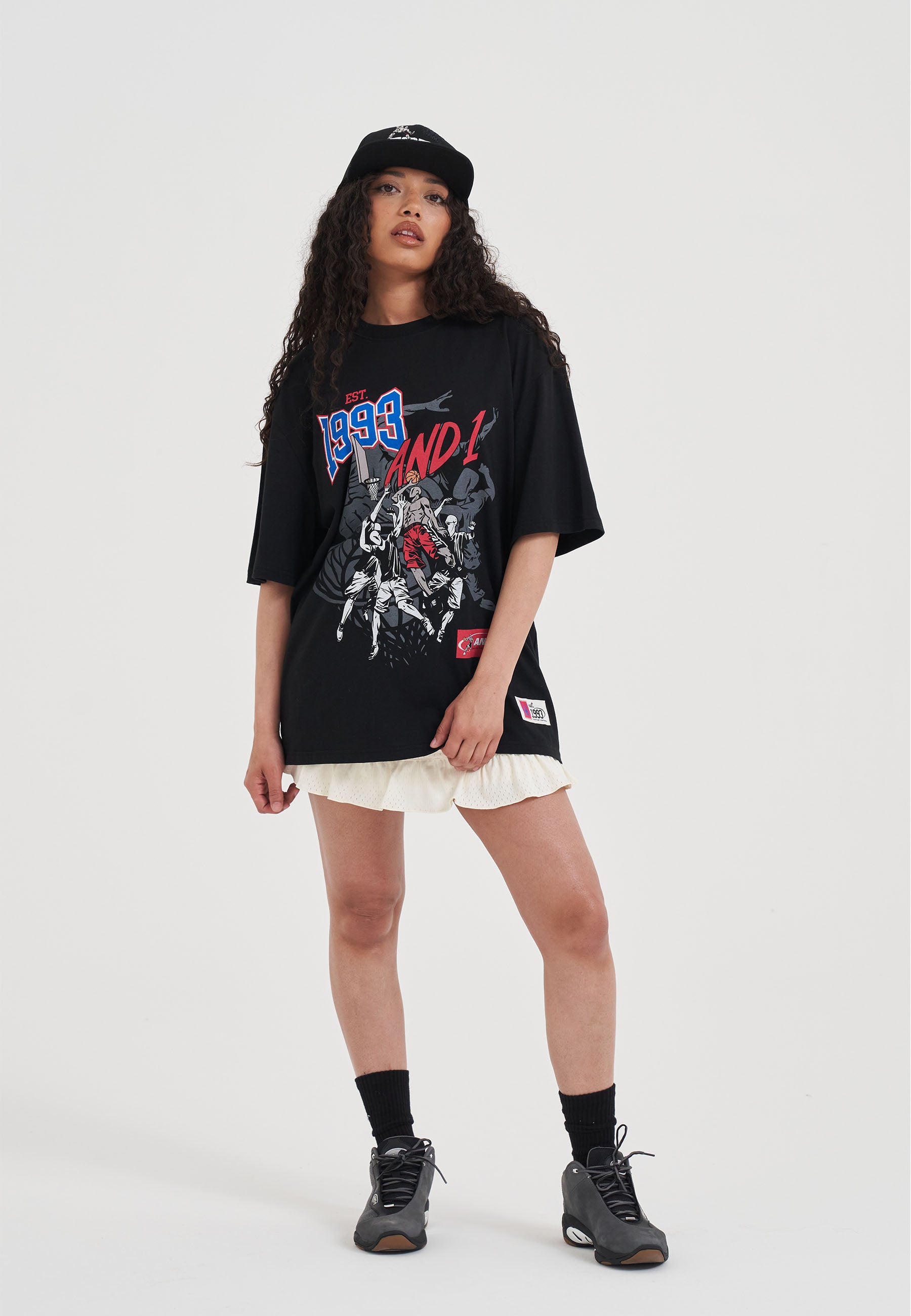 WOMENS 1993 GRAPHIC OVERSIZED T-SHIRT TOP in Black.