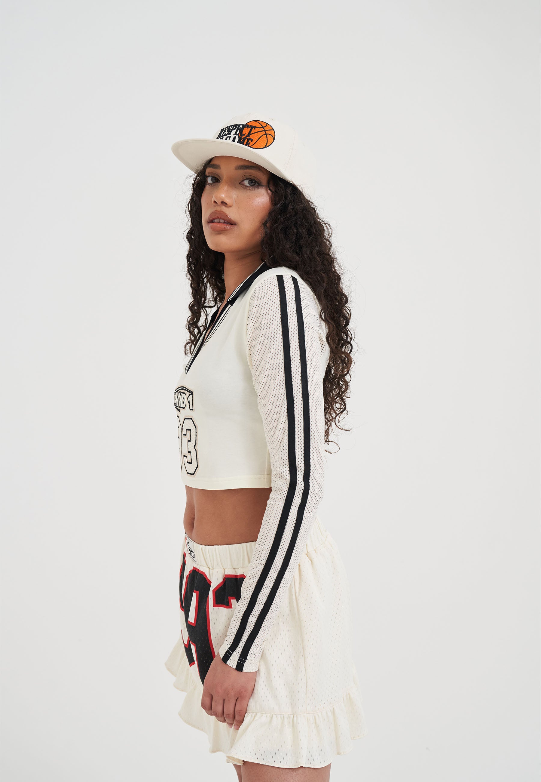 WOMENS 93 AIRTEX V NECK LONG SLEEVE TOP in Ecru/Black.