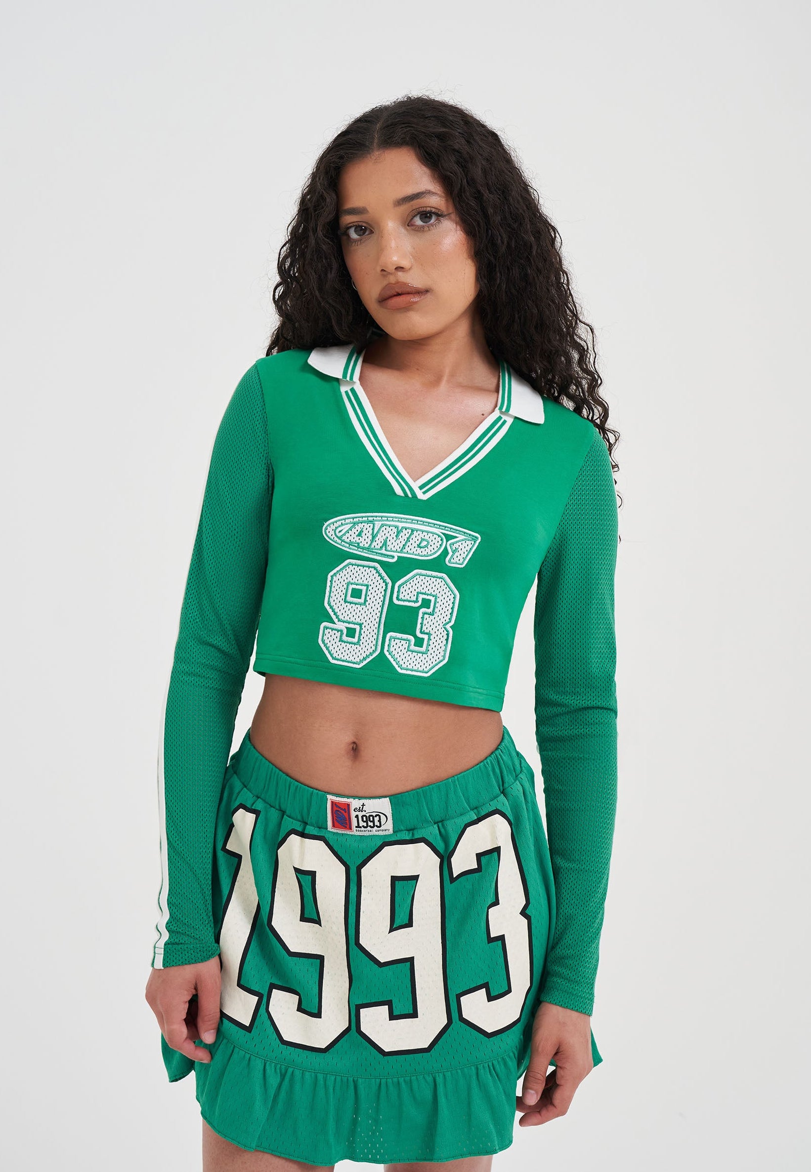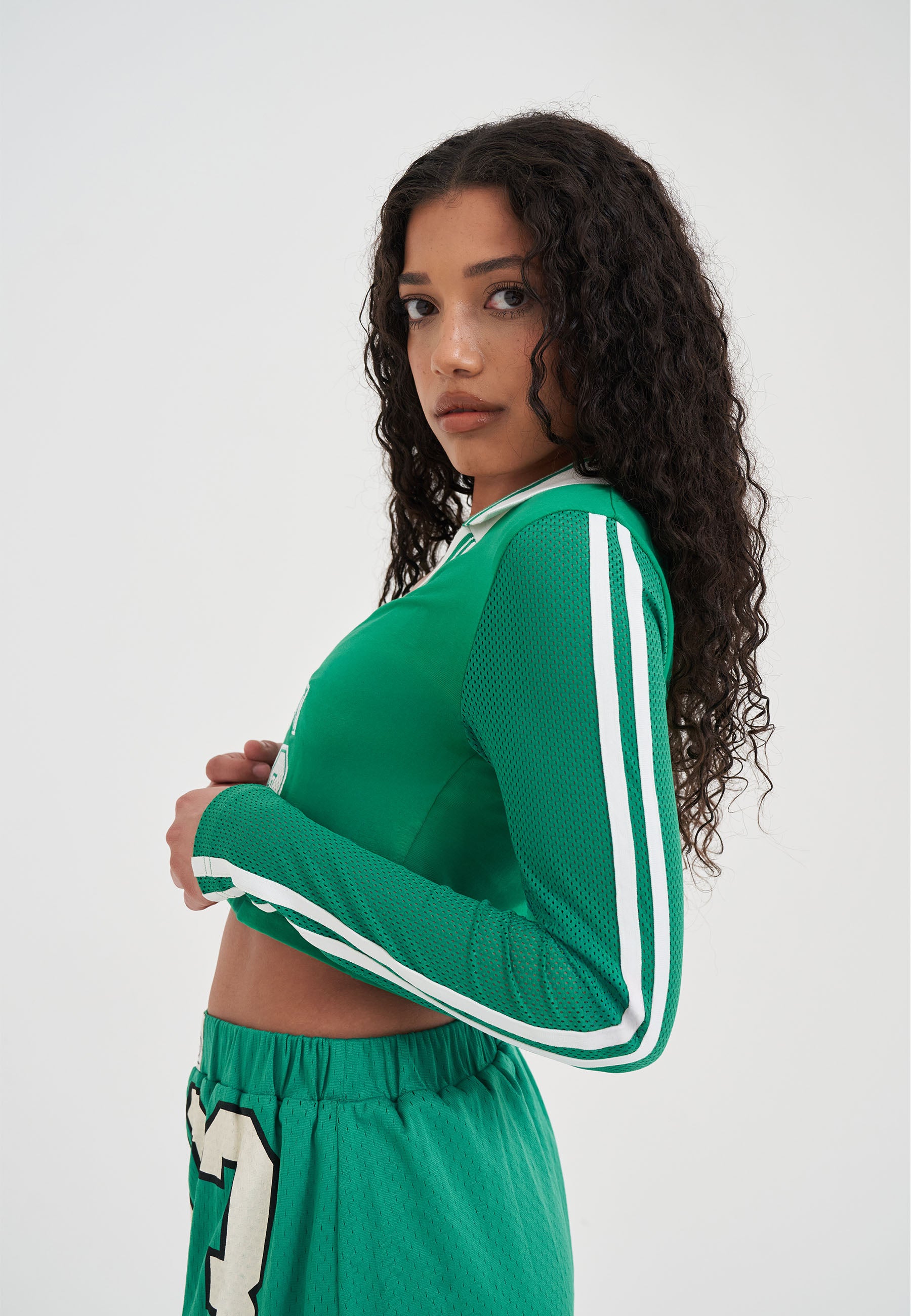 WOMENS 93 AIRTEX V NECK LONG SLEEVE TOP in Green/White.