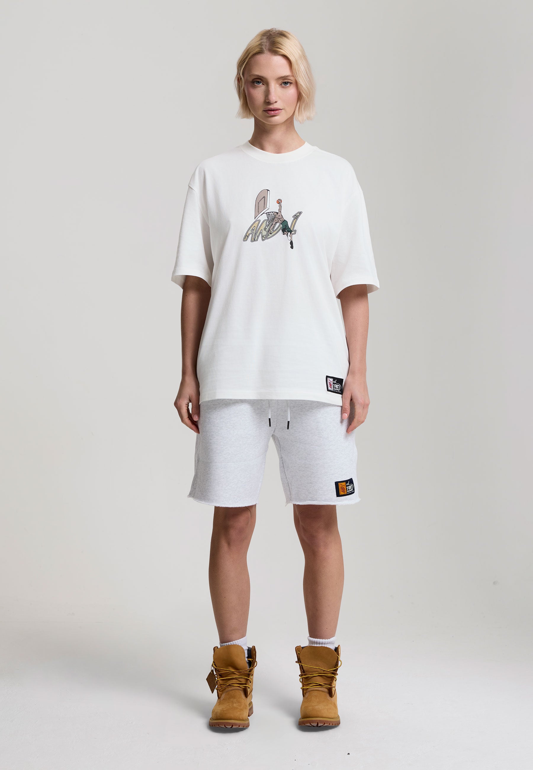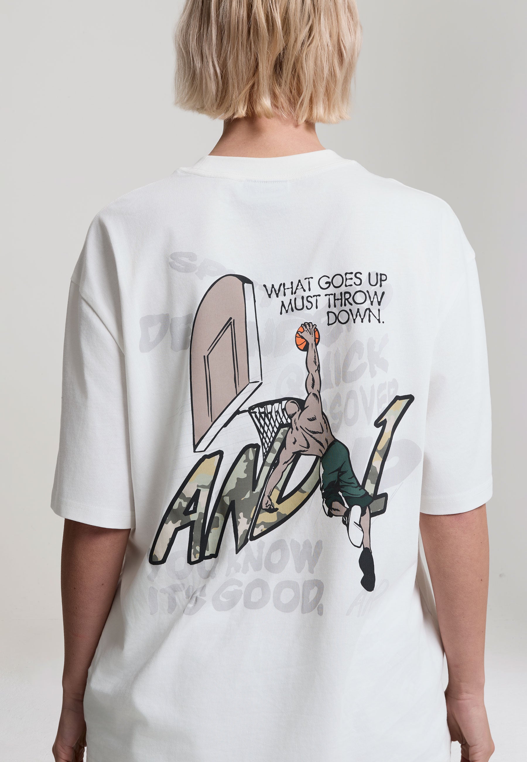 WOMENS AND1 CAMO DUNK OVERSIZED GRAPHIC T-SHIRT in White