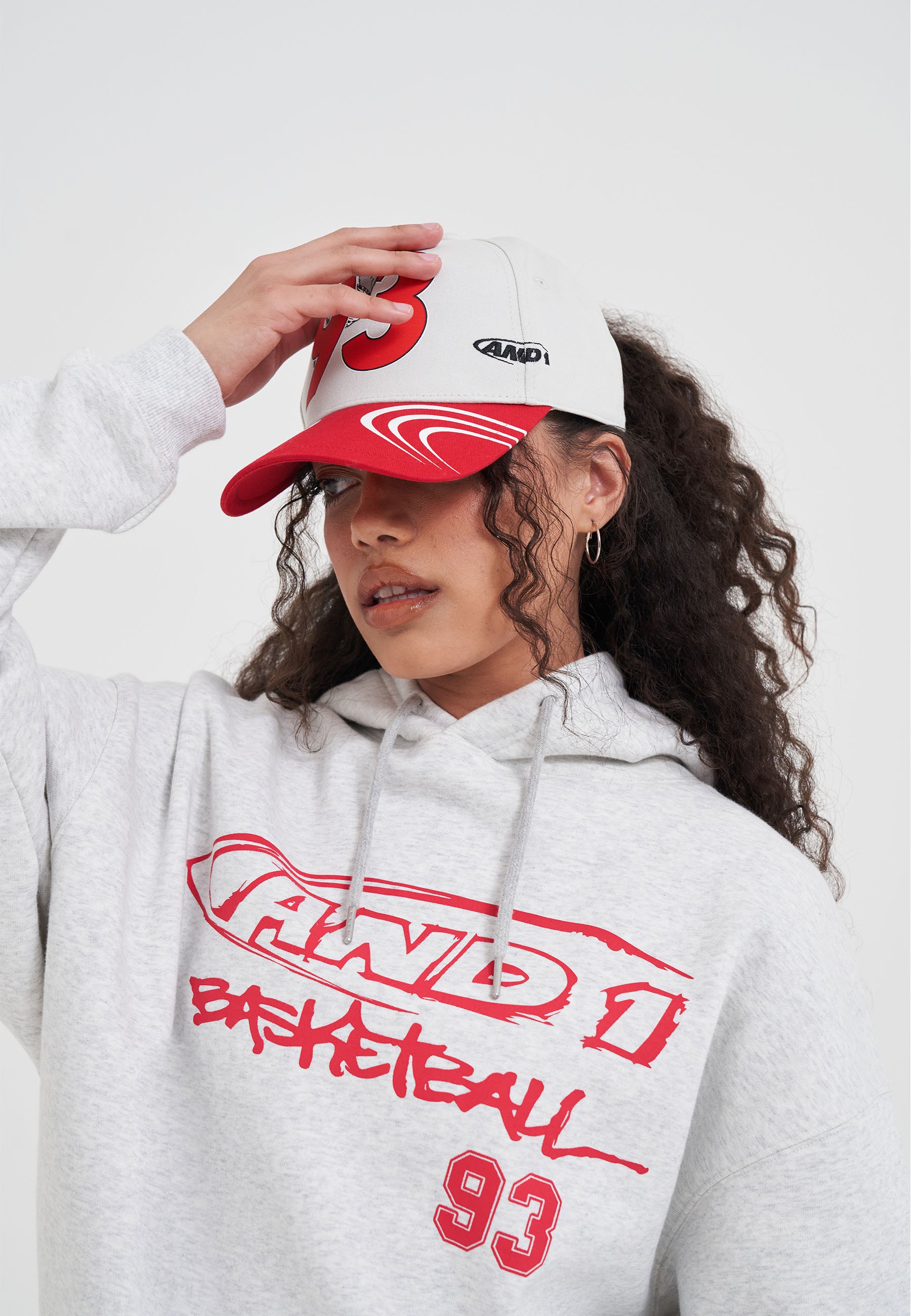 WOMENS CORE GRAFFITI LOGO HOODIE in Grey/Red.