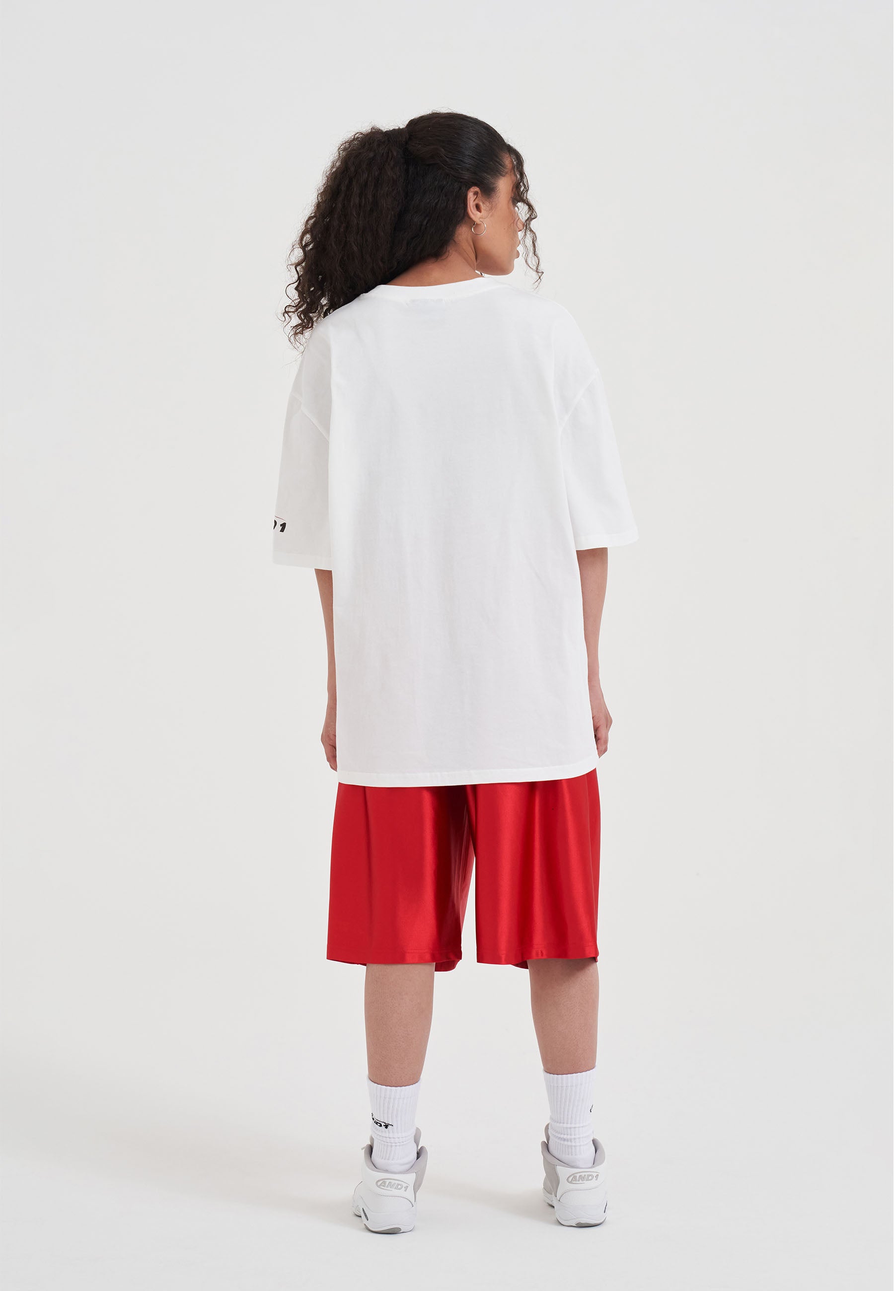 WOMENS CORE SATIN BADGE BASKETBALL SHORTS in Red.