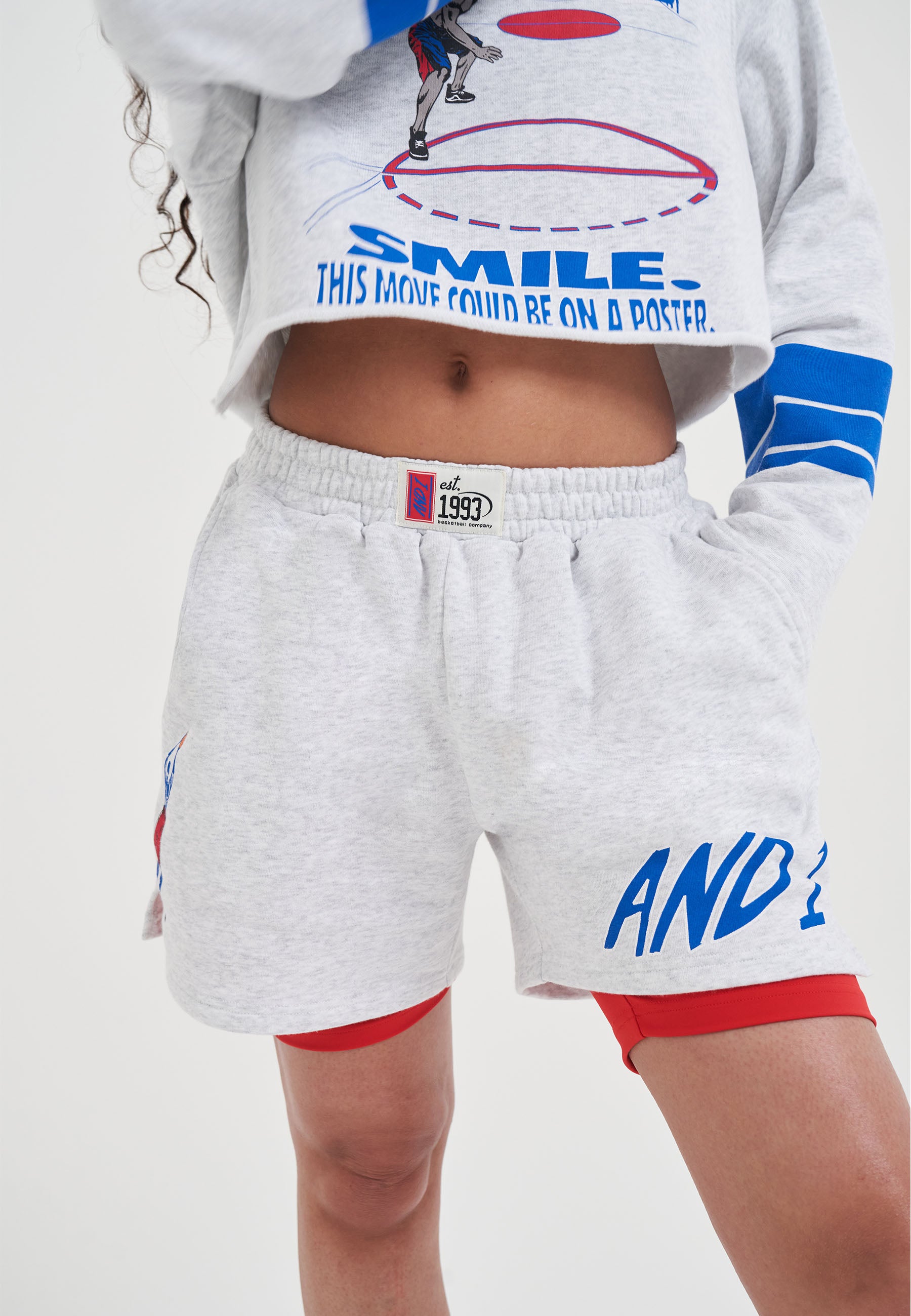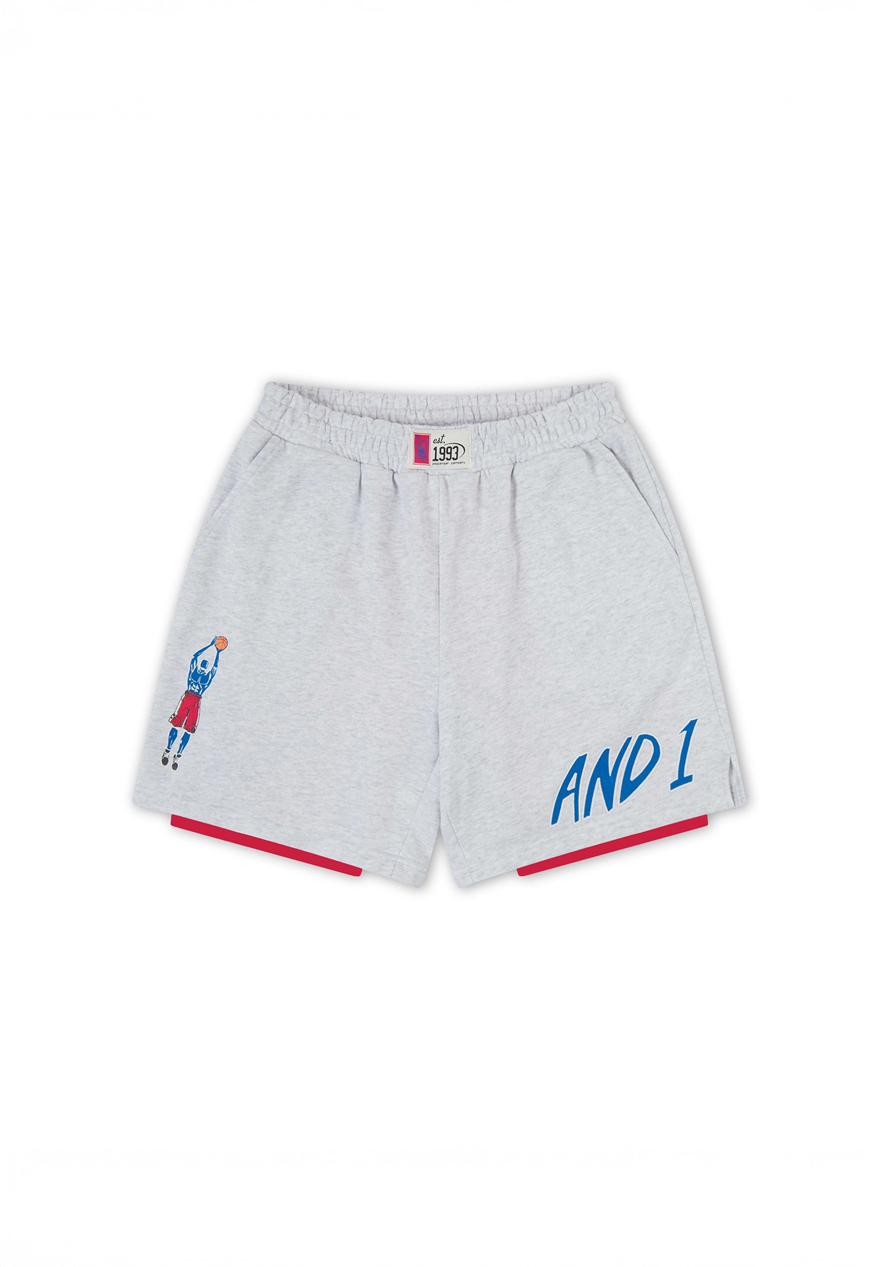 WOMENS DOUBLE LAYER DUNK SHORTS in Frost Marl/Red