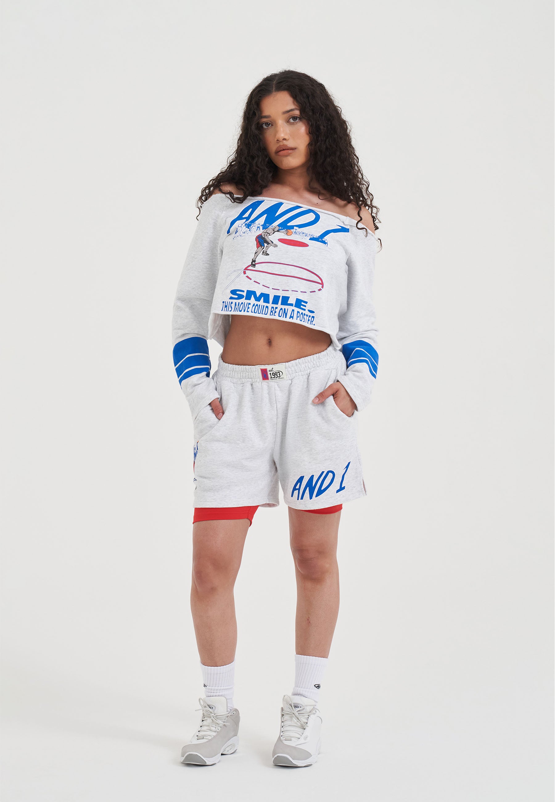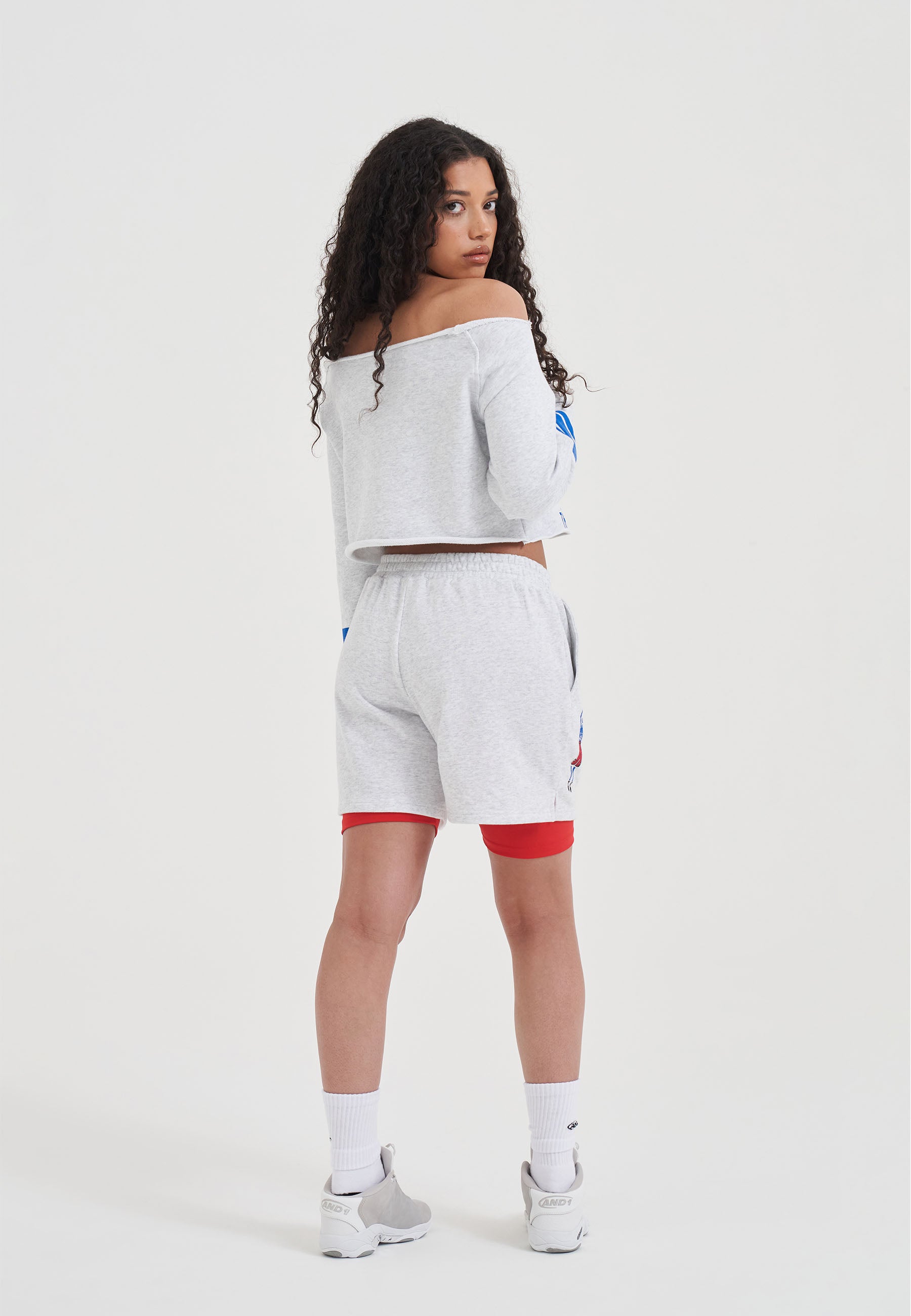Womens Double Layer Dunk Shorts - Frost Marl/Red
