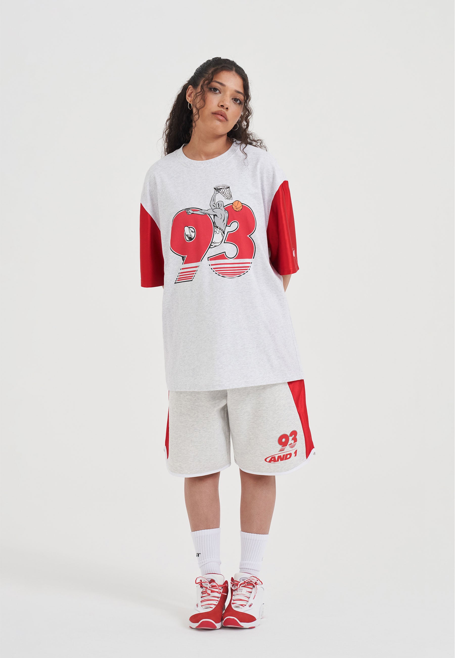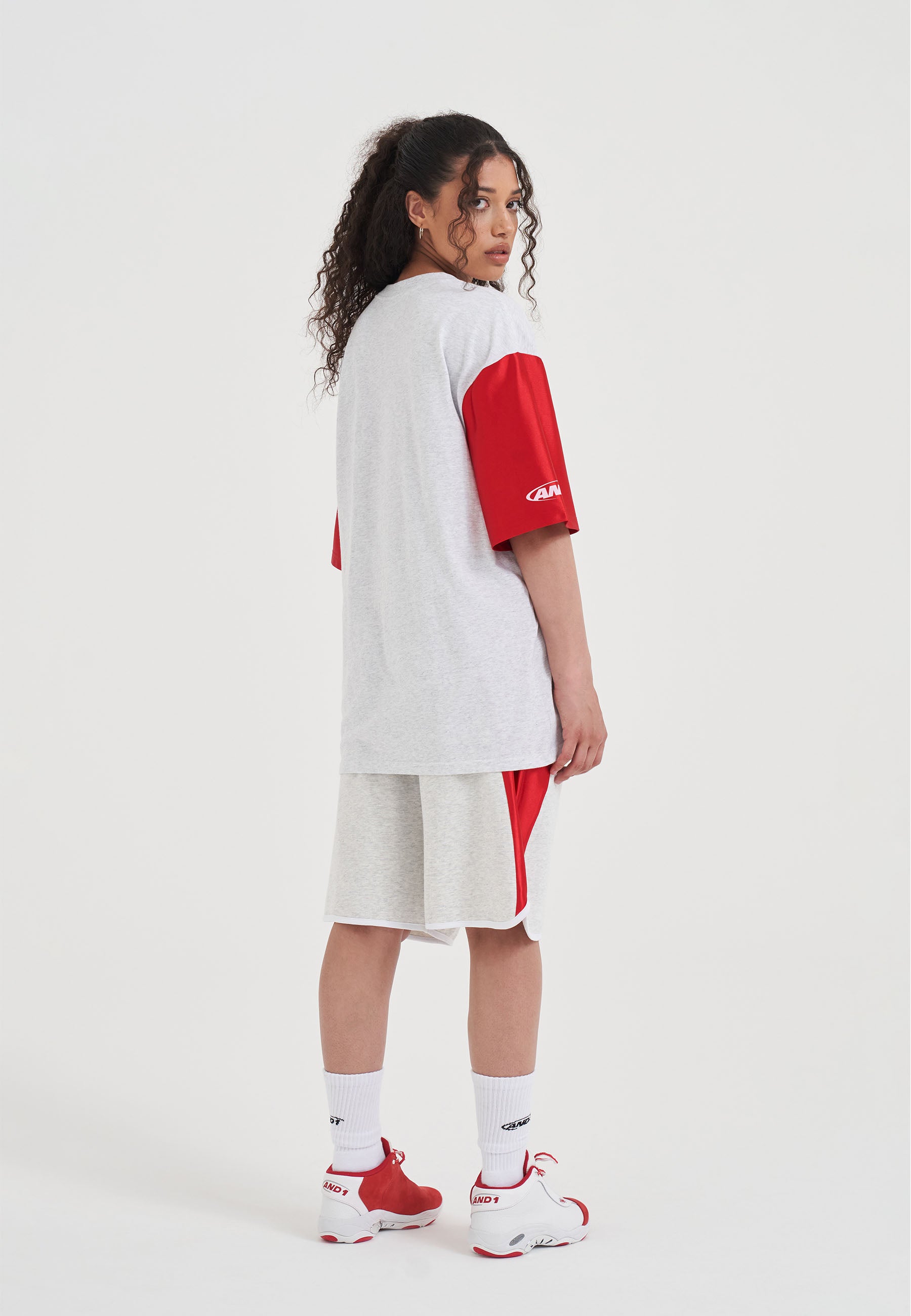 WOMENS JERSEY STYLE COLOURBLOCK T-SHIRT in Frost Marl/Red