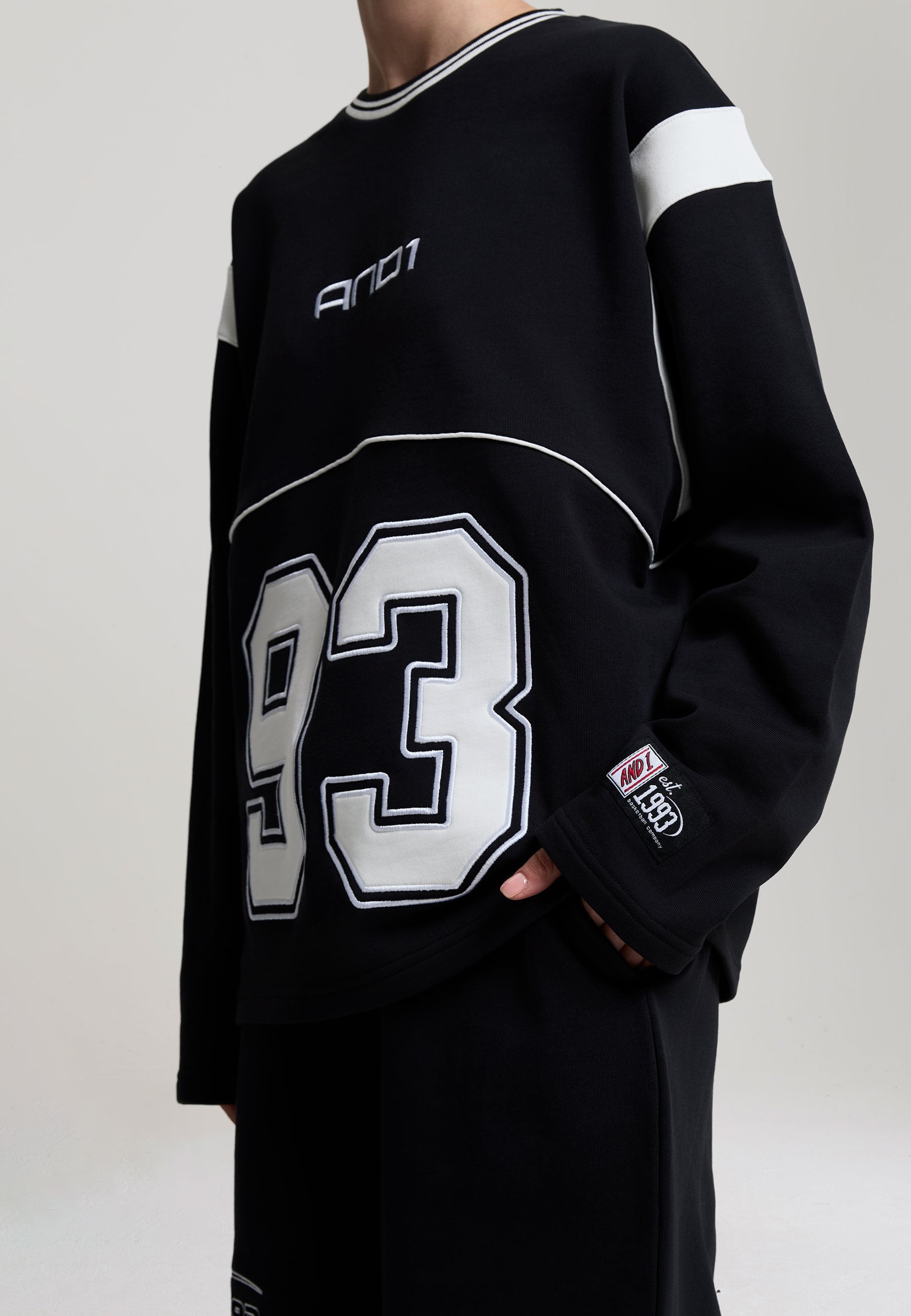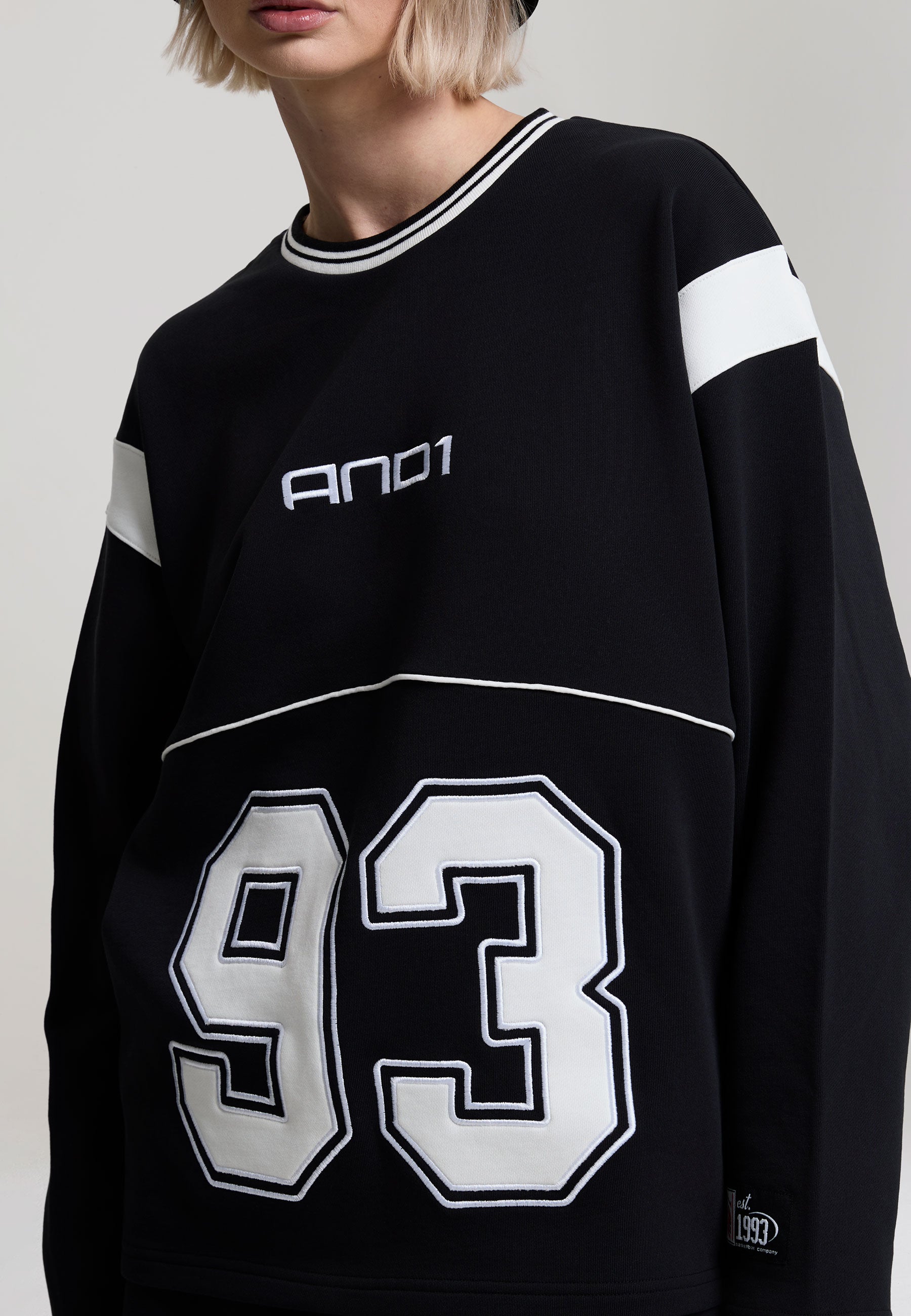 WOMENS LS 93 APPLIQUE PANELLED SWEATSHIRT in Black