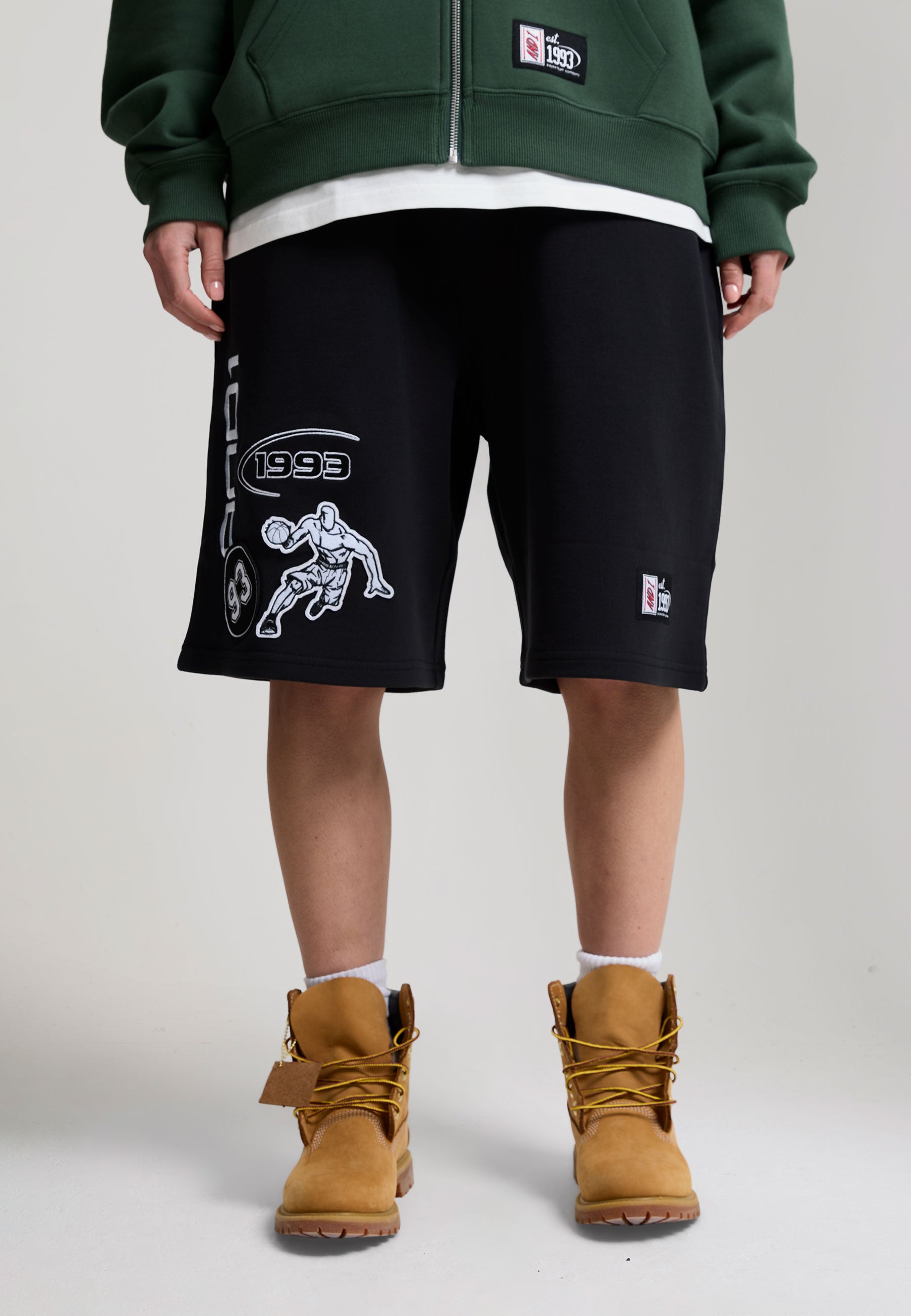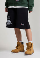WOMENS ON COURT APPLIQUE BADGE JERSEY BASKETBALL JORTS in Black