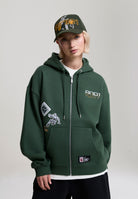 WOMENS RESPECT THE GAME MULTI BADGE ZIP THROUGH HOODIE in Forest Green