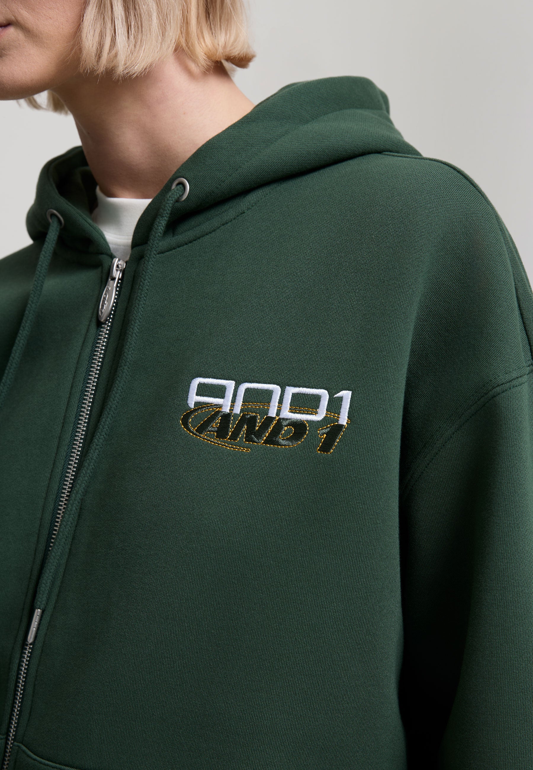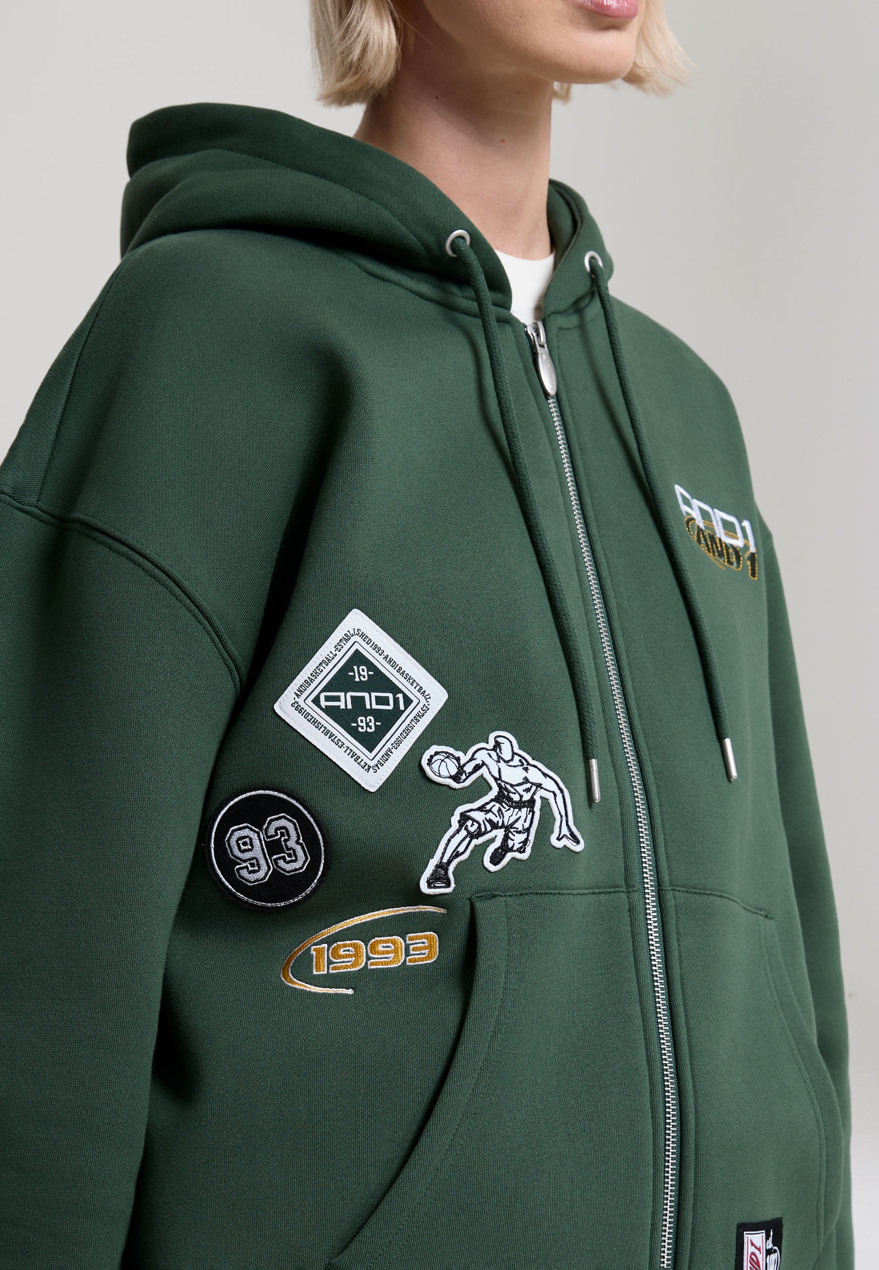 - AND1 WOVEN BRANDED TAB AT KANGAROO POCKET