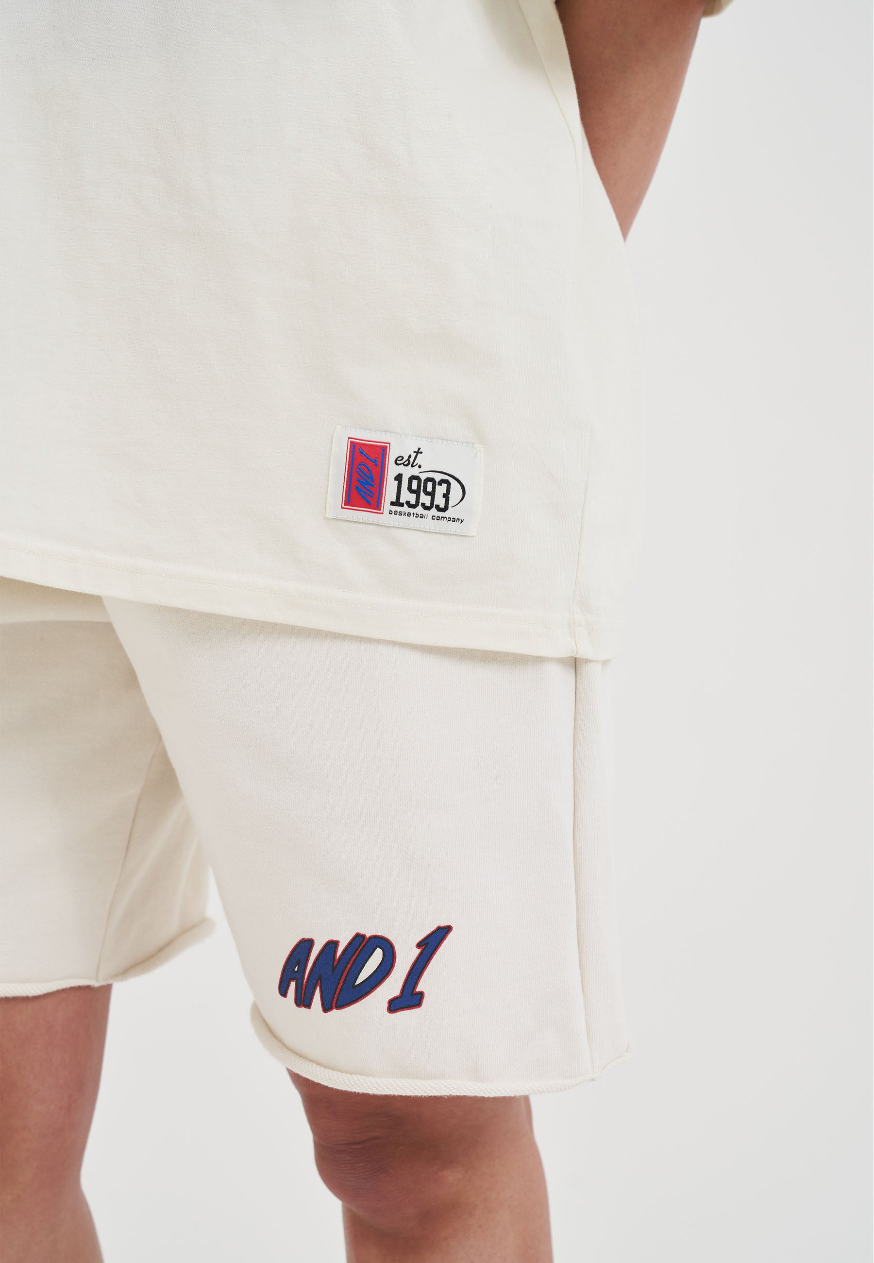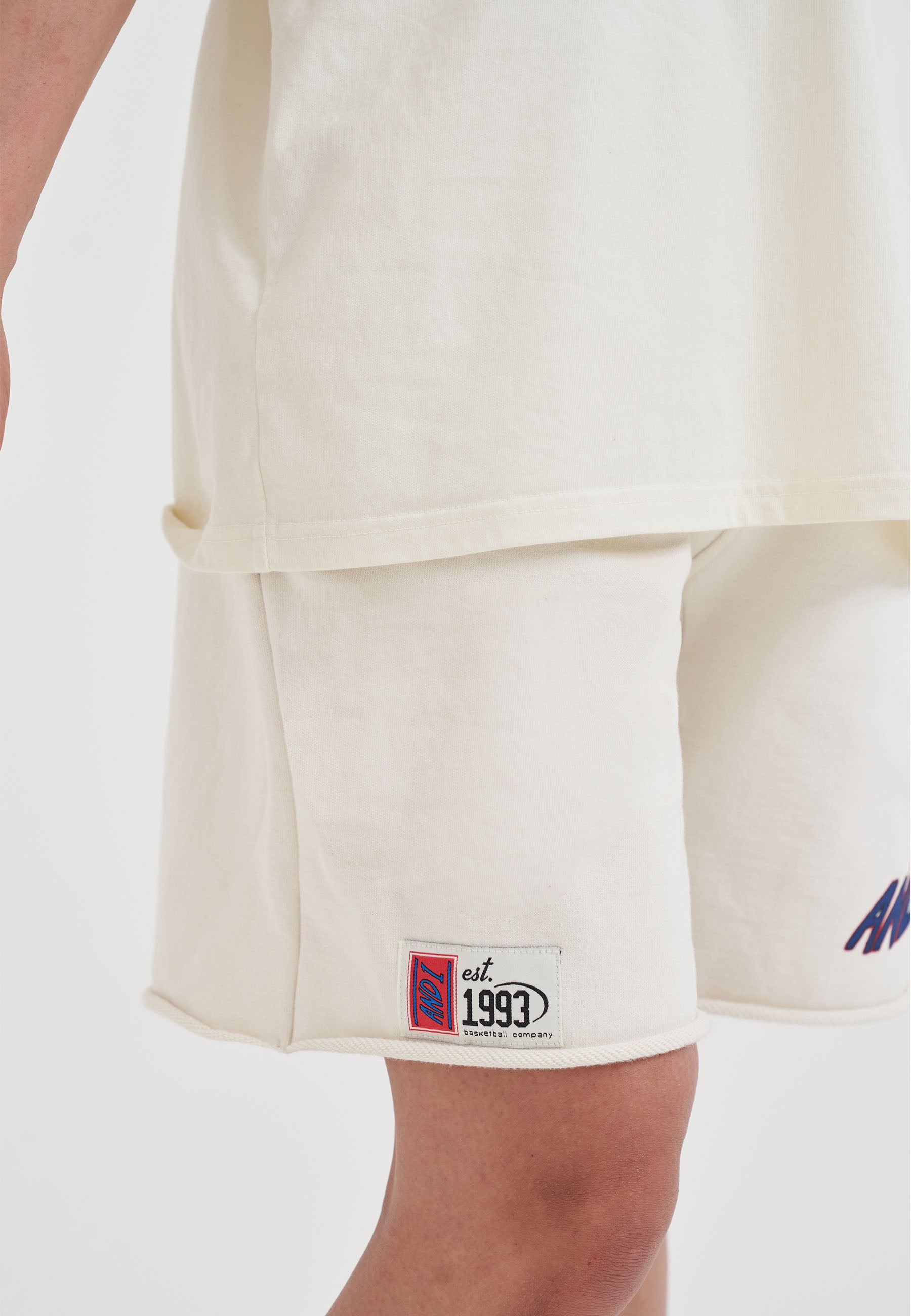 WOMENS RETRO LOGO RAW HEM SHORTS in Ecru